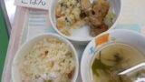 <おからの焼きコロッケ>おからの焼きコロッケは新メニューでした!豚ひき肉と玉葱におからを混ぜて、パン粉をかけて焼きました。おからが入ってヘルシー感が出るかと思いきや、ボリューム感あり、ハンバーグのような味わいとなりました。レモンの和え物も人気でした!
