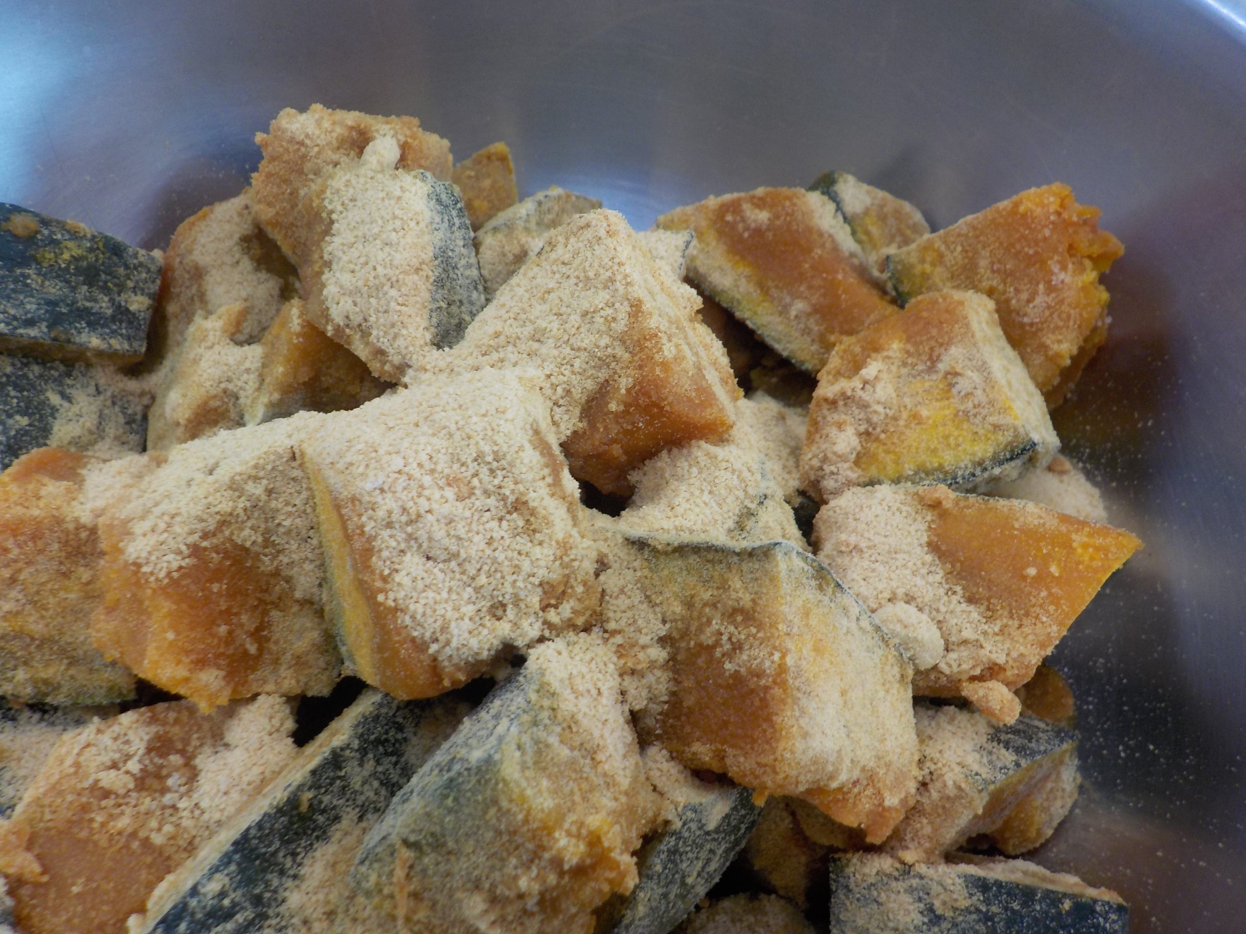 <南瓜について>丸のままの南瓜は冷暗所で1~2ヶ月保存可能です。切ってある南瓜は傷みやすい種とわたの部分をくり抜き、ラップをして冷蔵庫に保存しましょう。加熱したものを冷凍して保存することもできます。