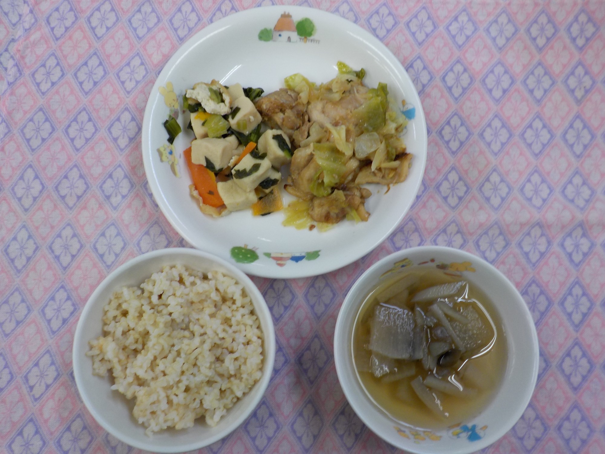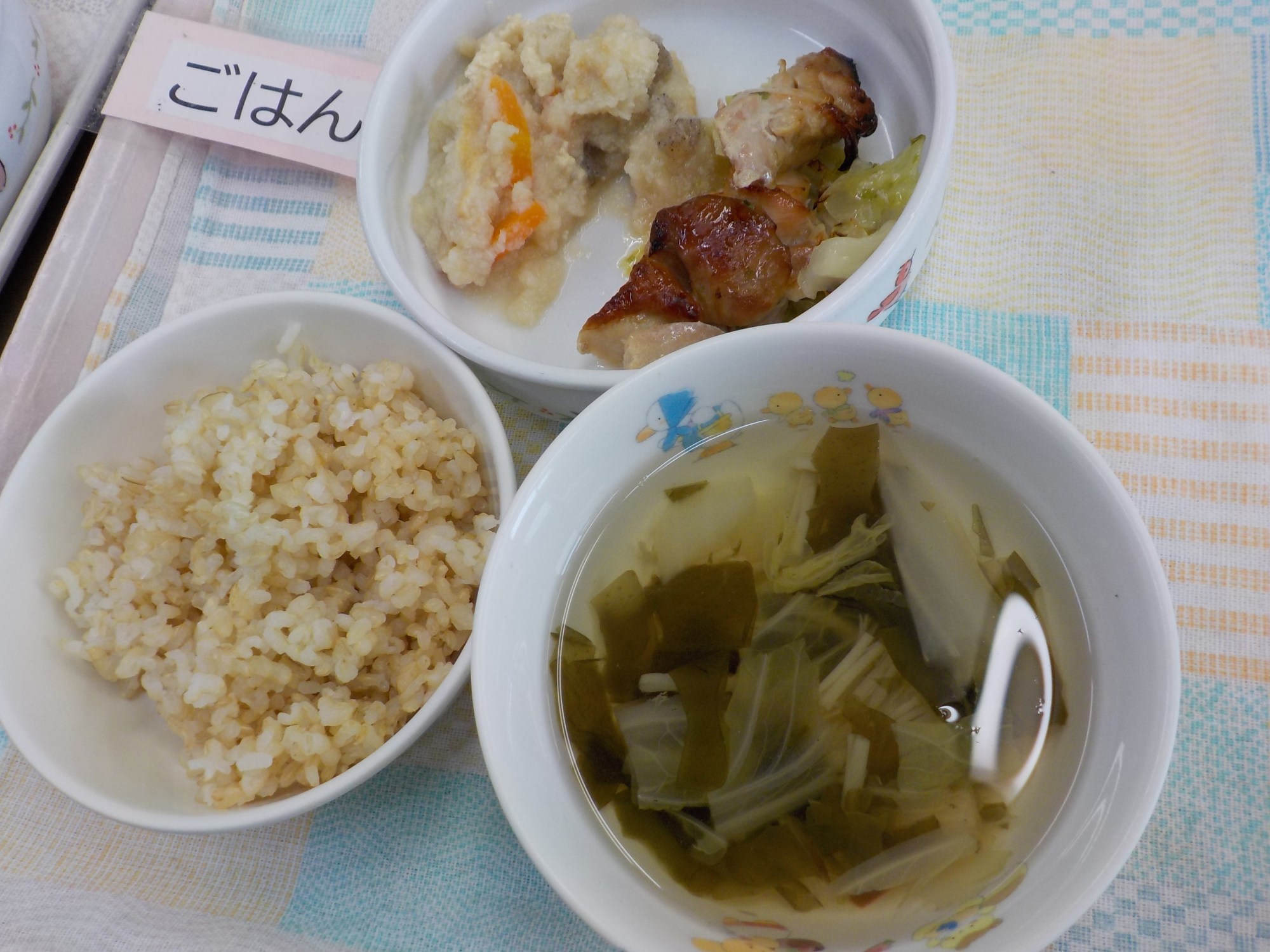 【ごはん】鶏肉の青のり焼き・卯の花の炒り煮・わかめのお吸い物
