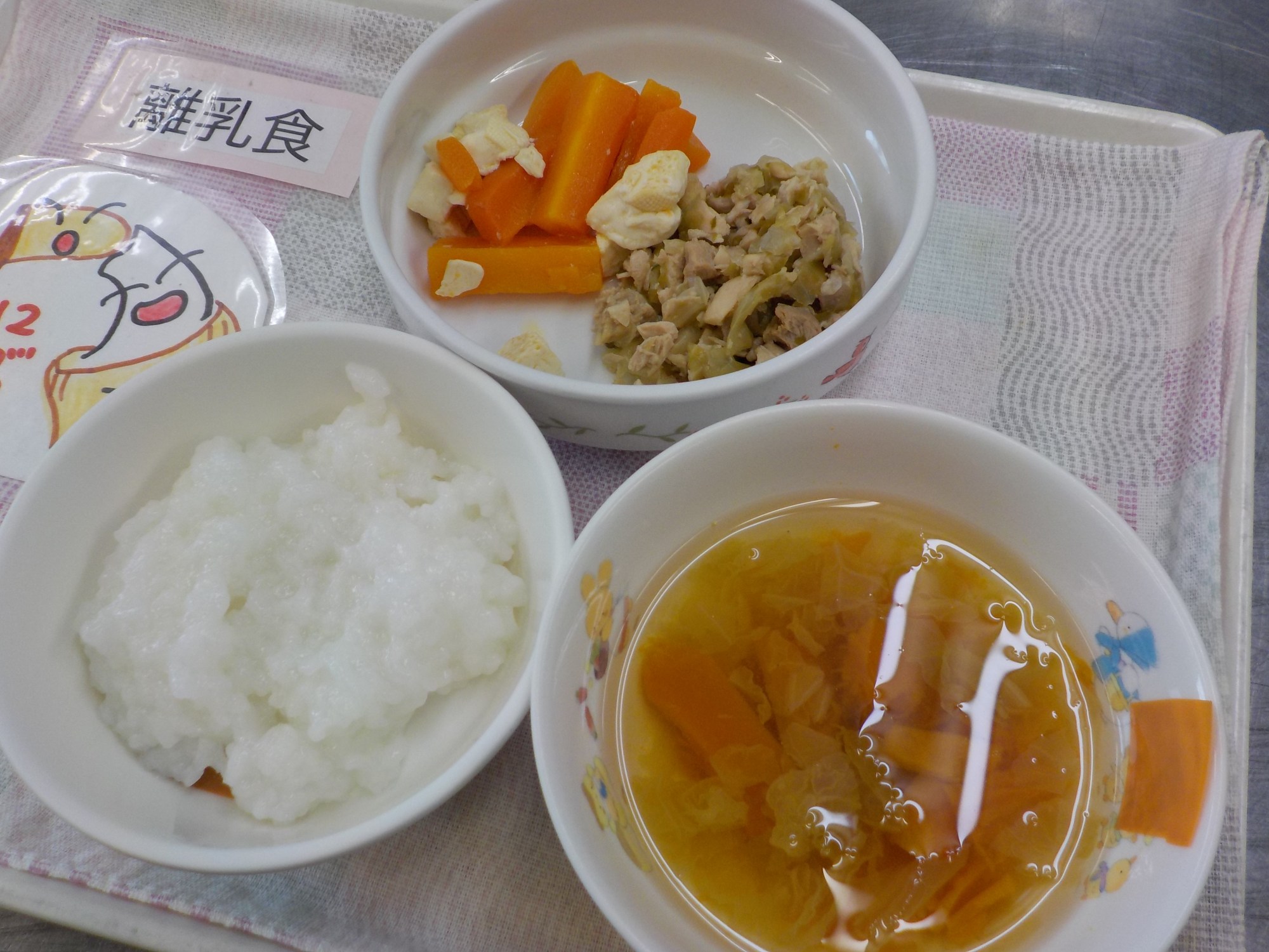 【離乳食】鶏肉の青のり焼き・炒り豆腐・南瓜のお吸い物