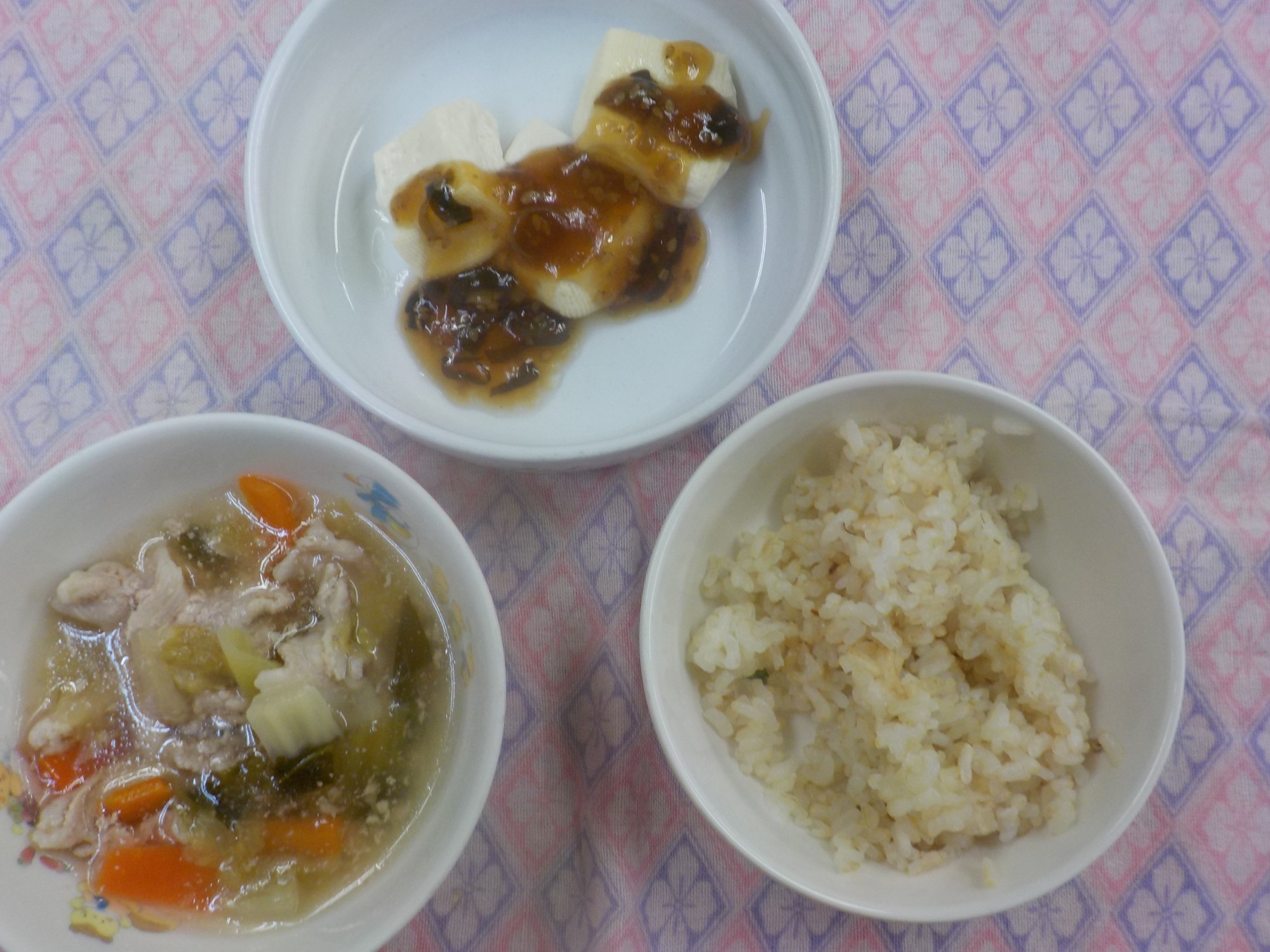 【12/11(水)夕食】八宝菜・蒸し豆腐の香味ソースがけ・もやしの中華和え