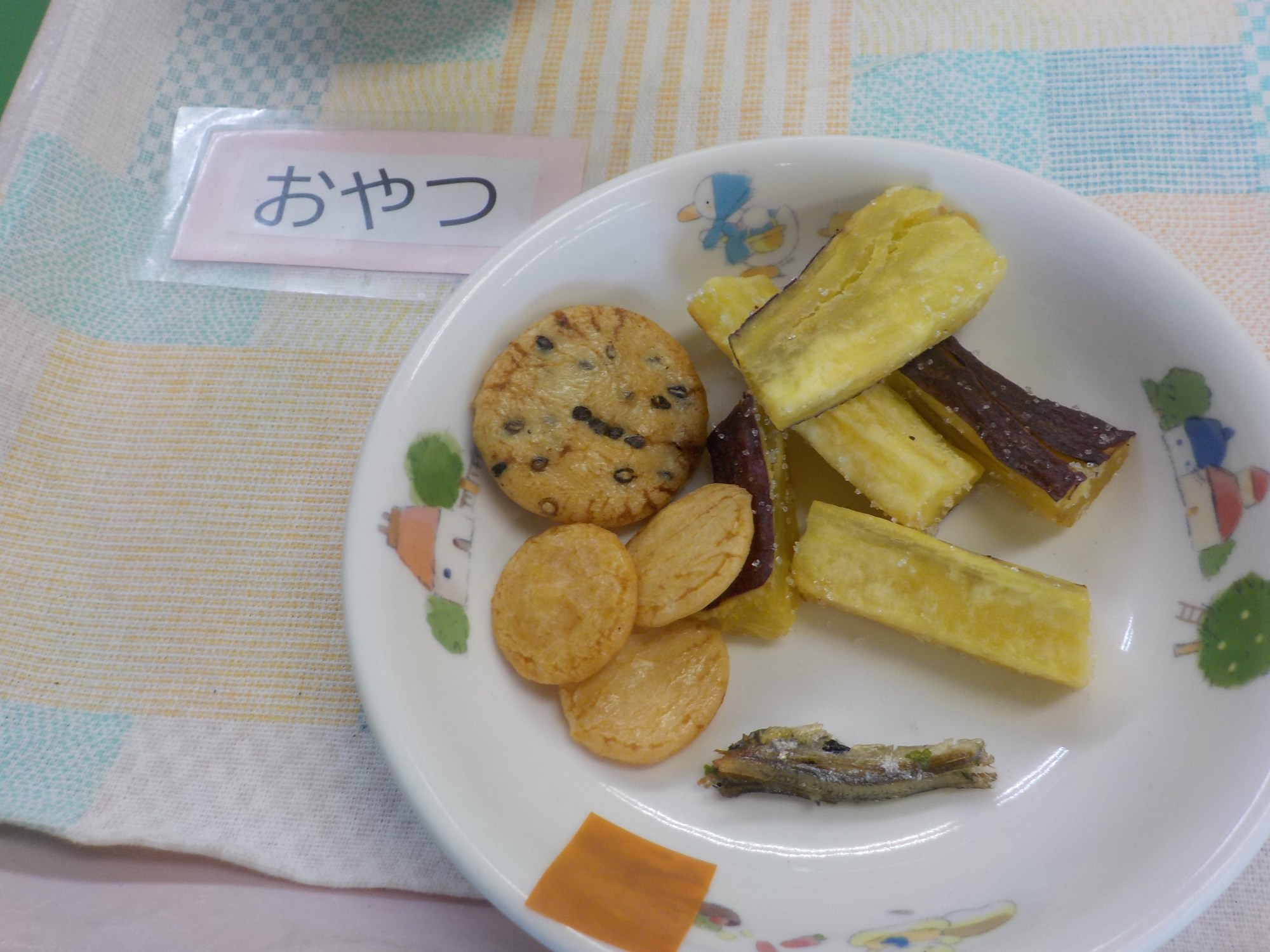 【おやつ】牛乳・さつま芋のシュガースティック・青のりじゃこ・お菓子