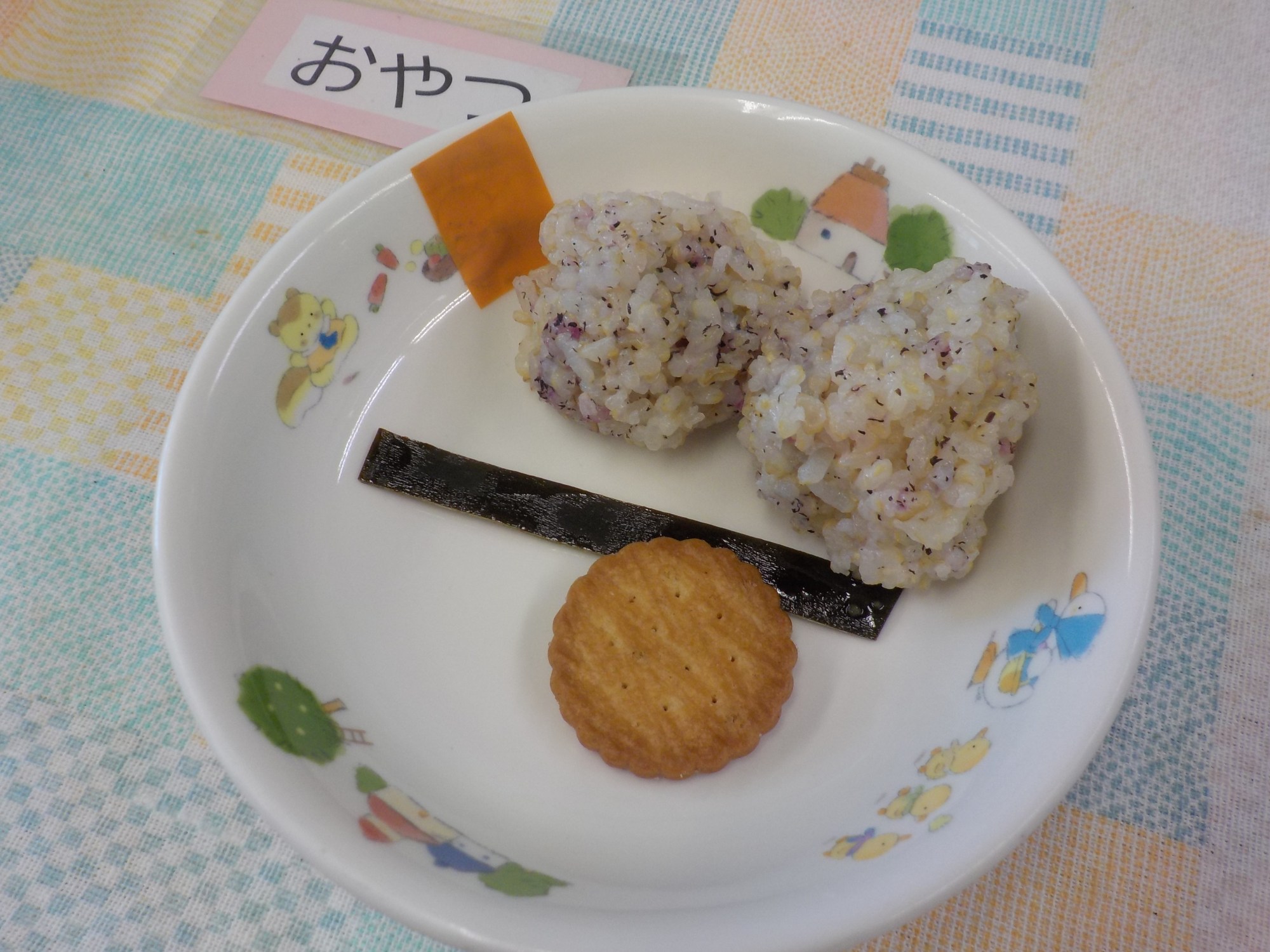 【おやつ】牛乳・ゆかりおにぎり・甘辛こんぶ・お菓子
