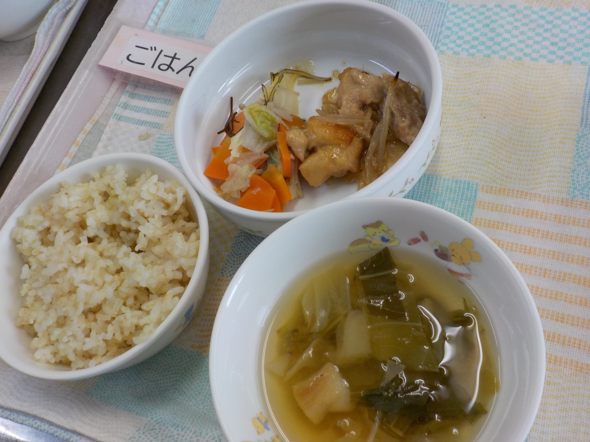 【ごはん】鶏肉の甘辛照り焼き・白菜の浅漬け・キャベツのみそ汁