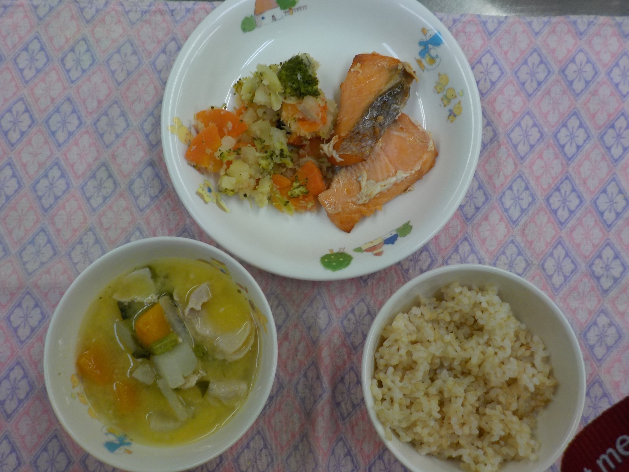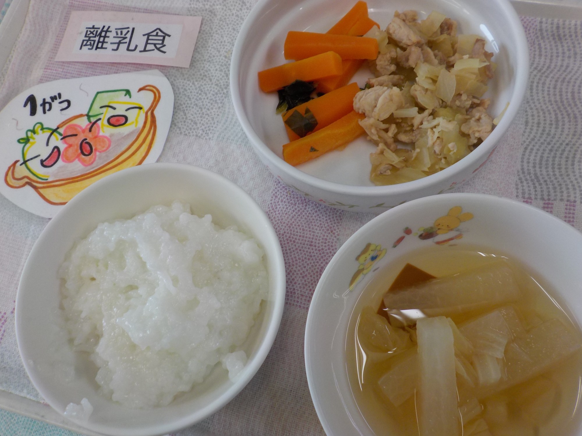 【離乳食】豚肉の醤油炒め・人参の煮物・白菜のすまし汁