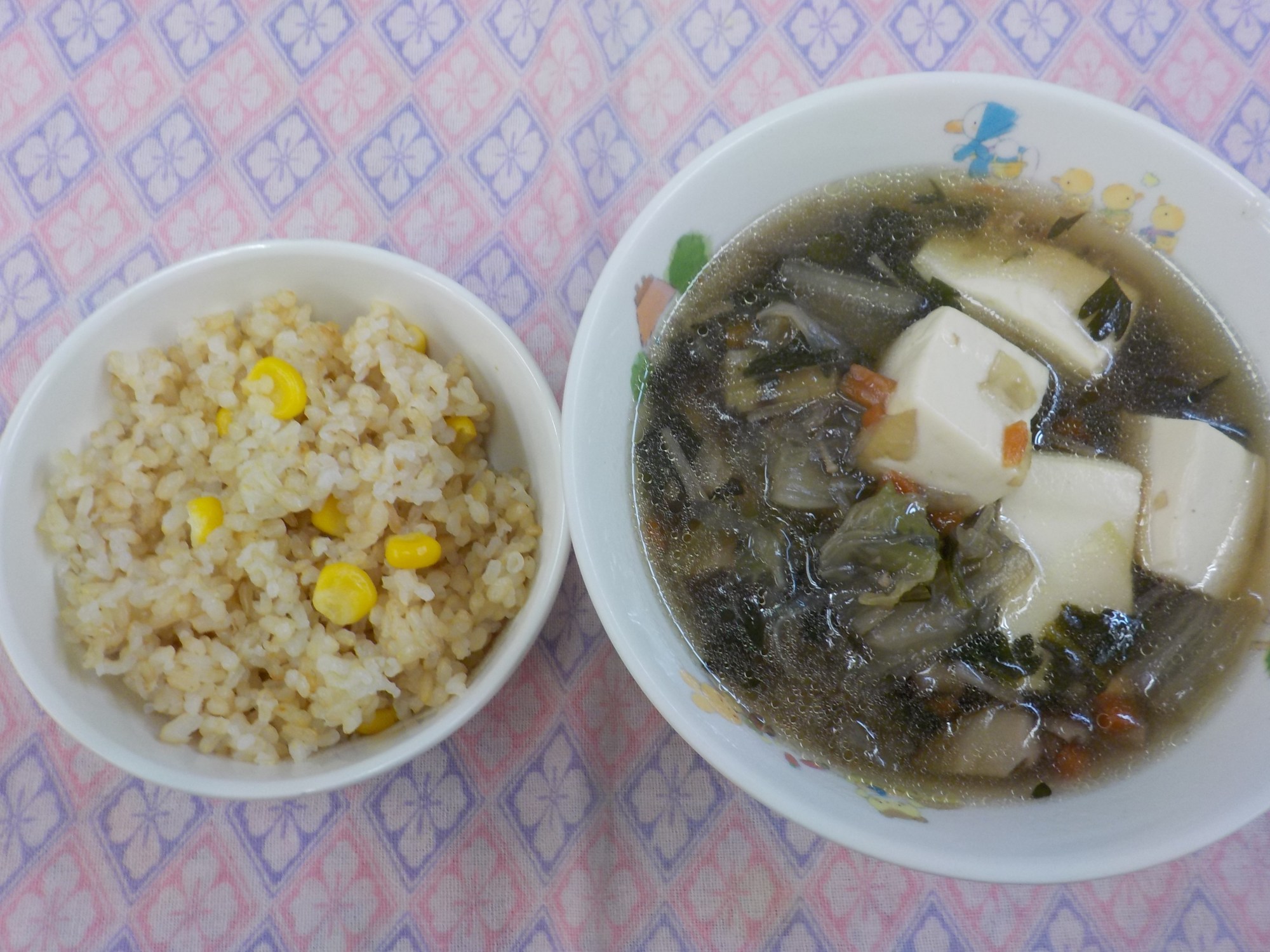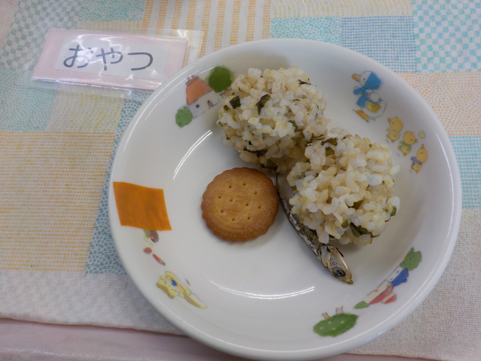 【おやつ】牛乳・わかめおにぎり・ゆかりじゃこ・お菓子