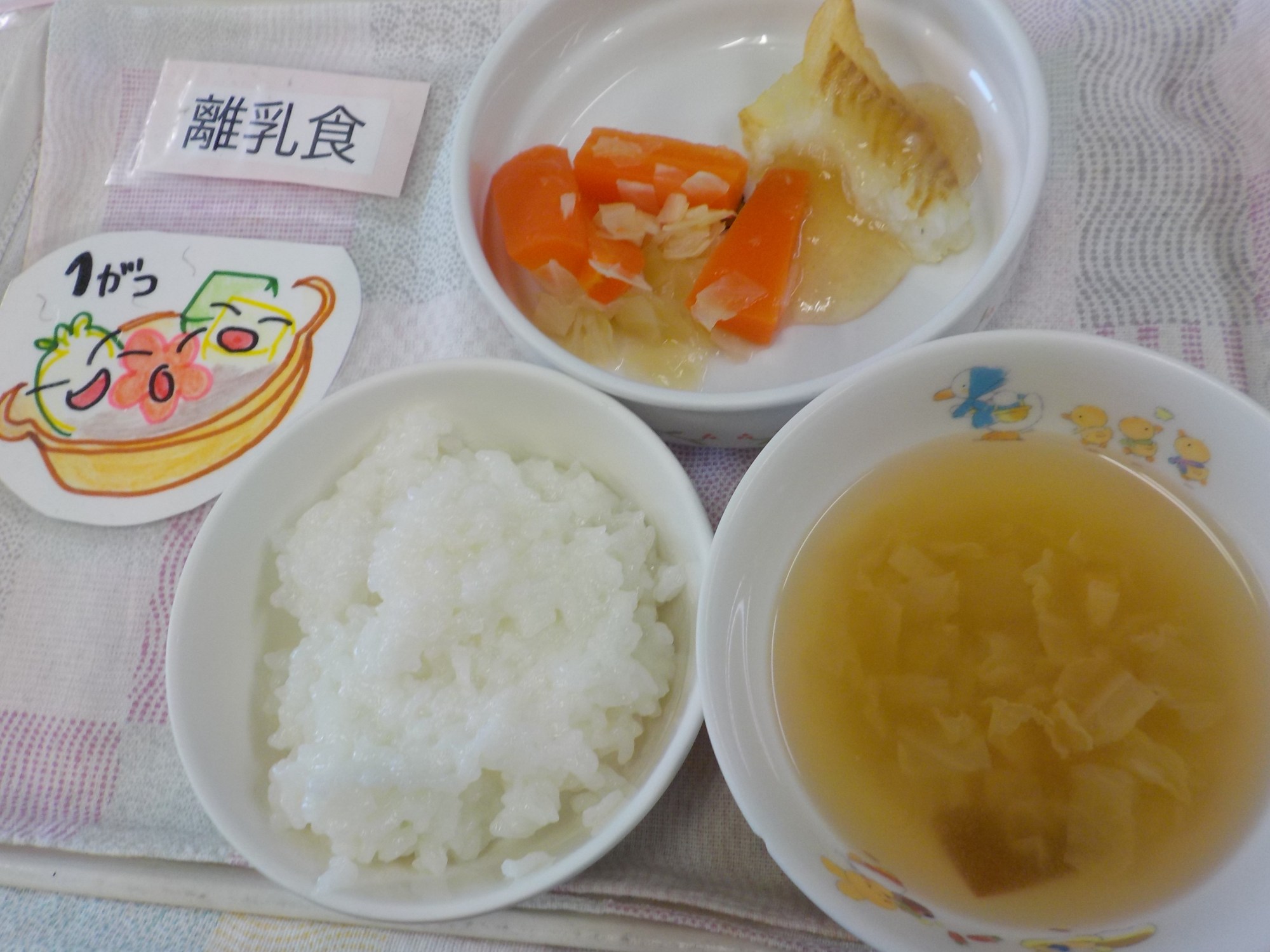【離乳食】カレイのおろしあんかけ・キャベツの塩和え・白菜のみそ汁
