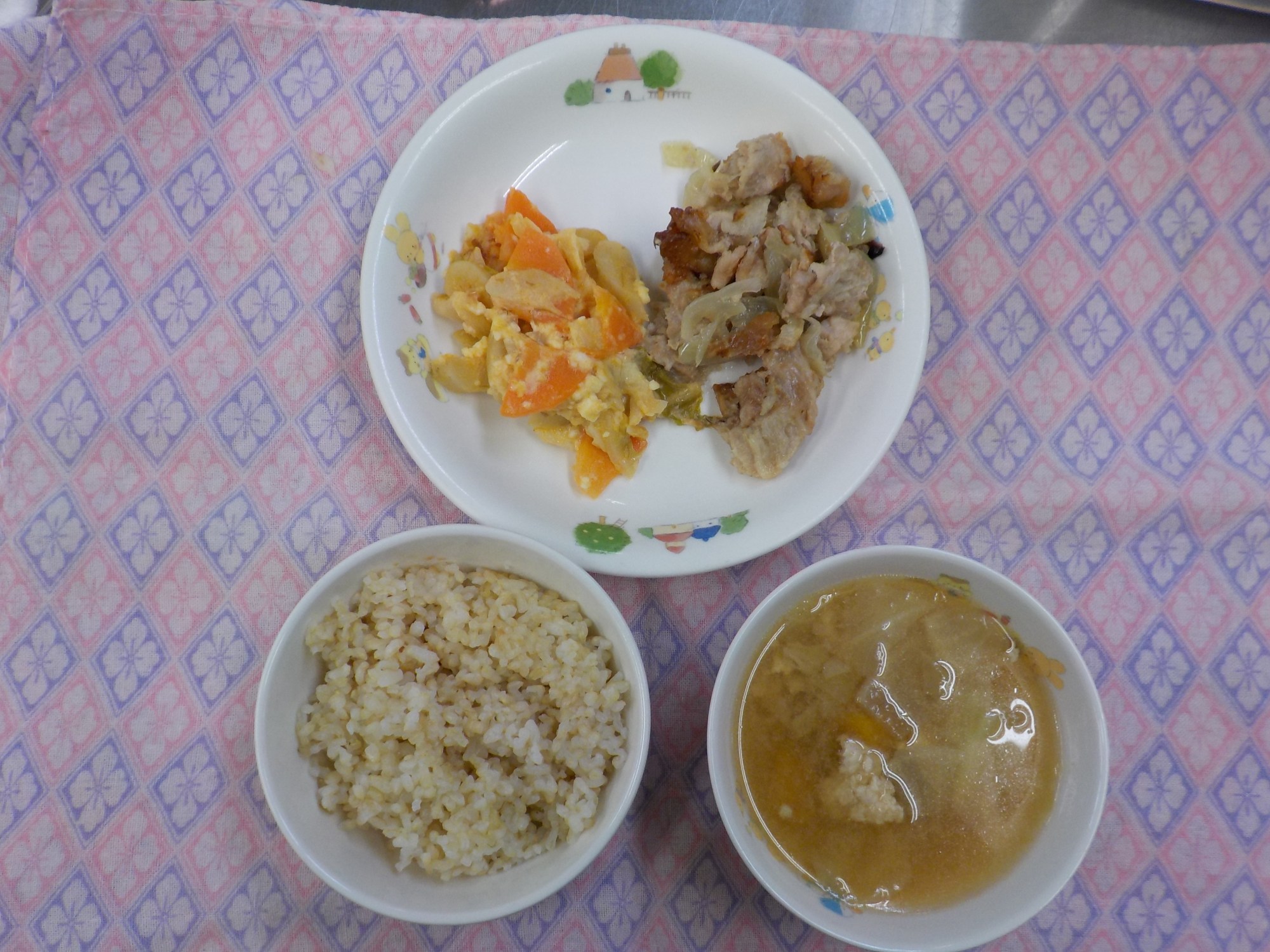【1/23(金)夕食】豚肉の塩焼き・人参のオーロラ和え・鶏そぼろみそ汁