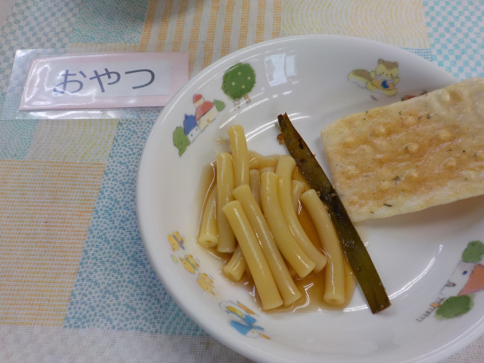 【おやつ】牛乳・みたらしマカロニ・ごまこんぶ・お菓子