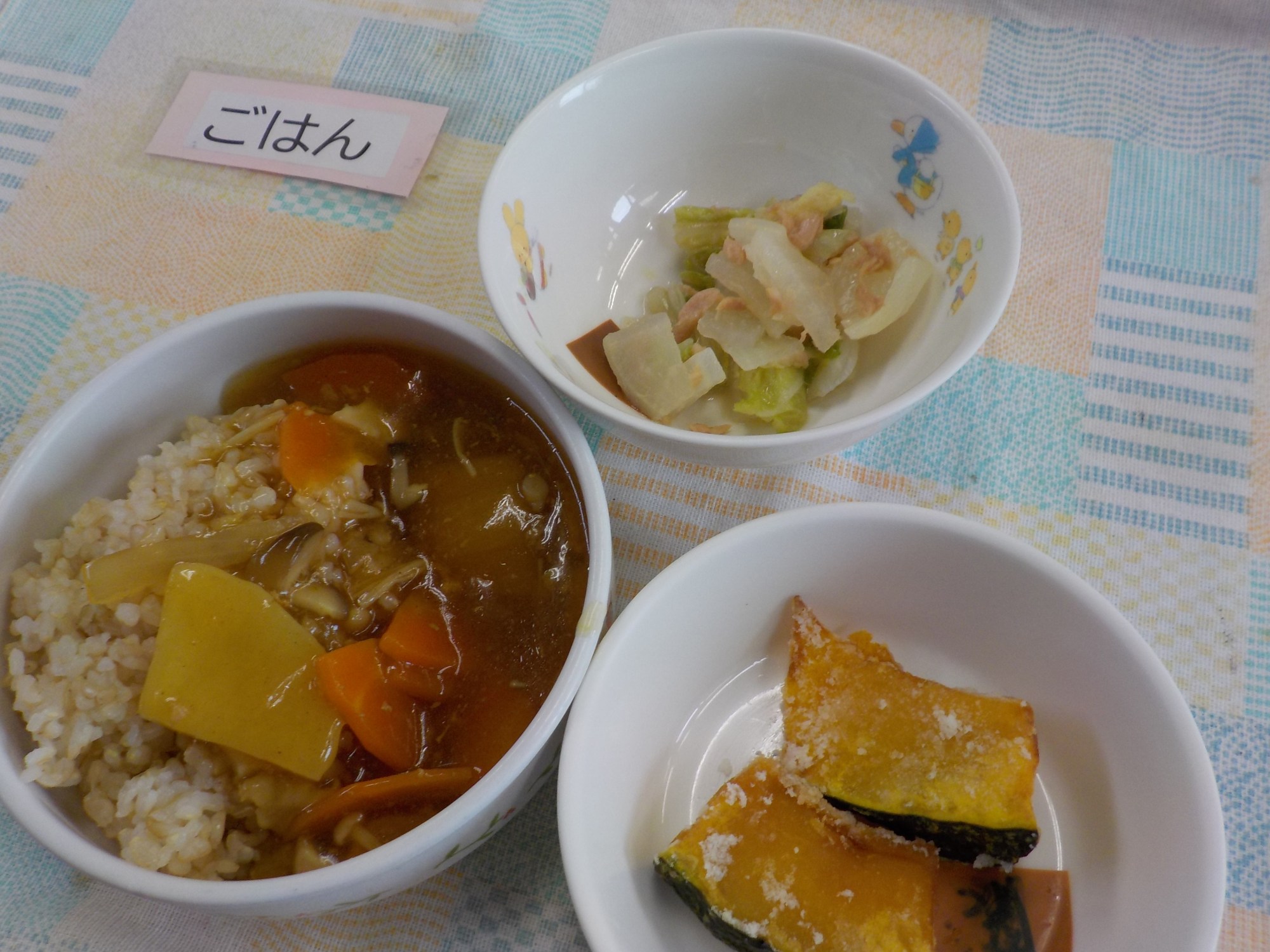 【ごはん】きのこのカレーライス・南瓜の唐揚げ・大根の和え物
