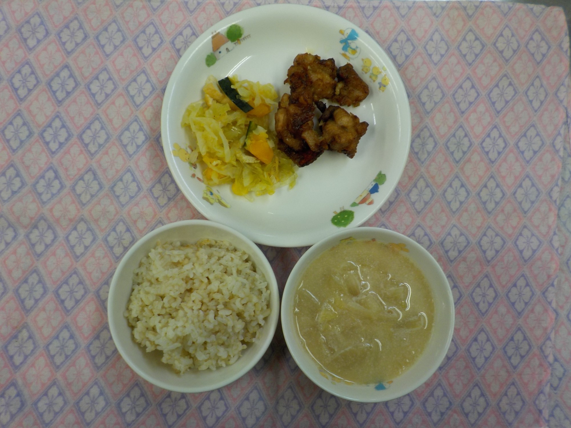 【2/2(月)夕食】鶏肉の唐揚げ・千草和え・具沢山ミルクみそ汁