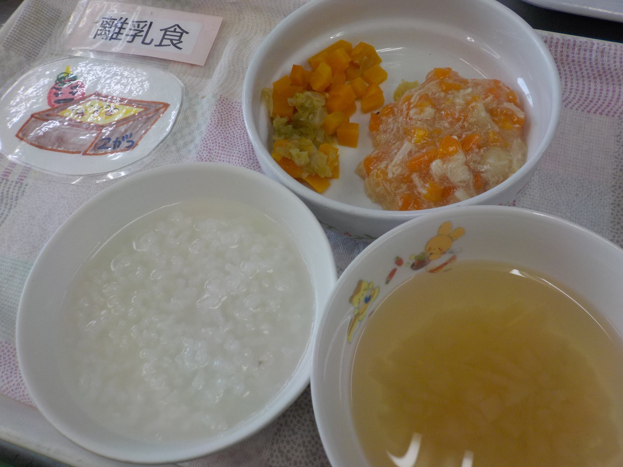 【離乳食】鶏肉のそぼろ炒め・青のり和え・大根のみそ汁