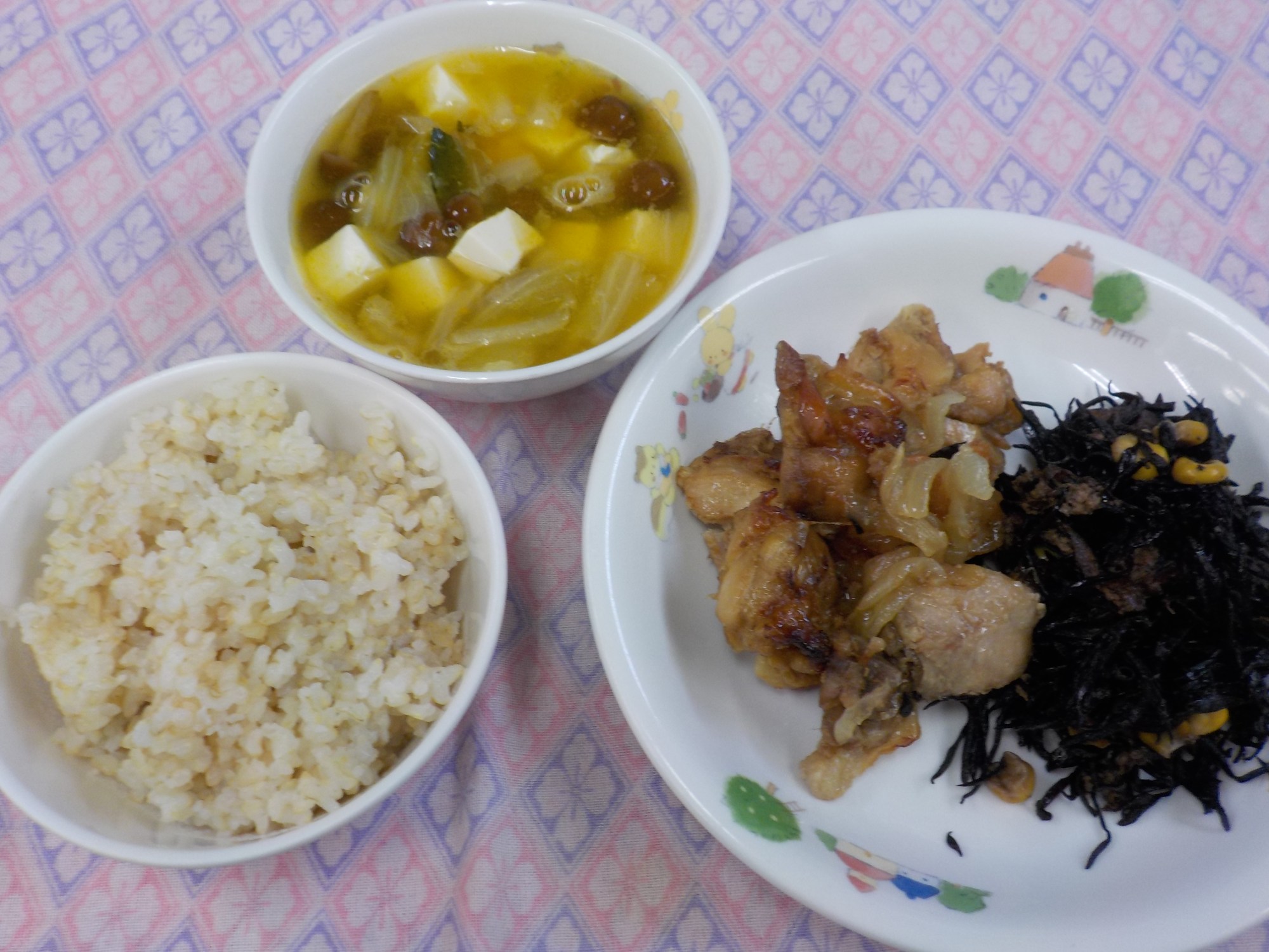 【2/5(木)夕食】鶏肉のおかか焼き・ひじきの煮物・なめこの和風スープ