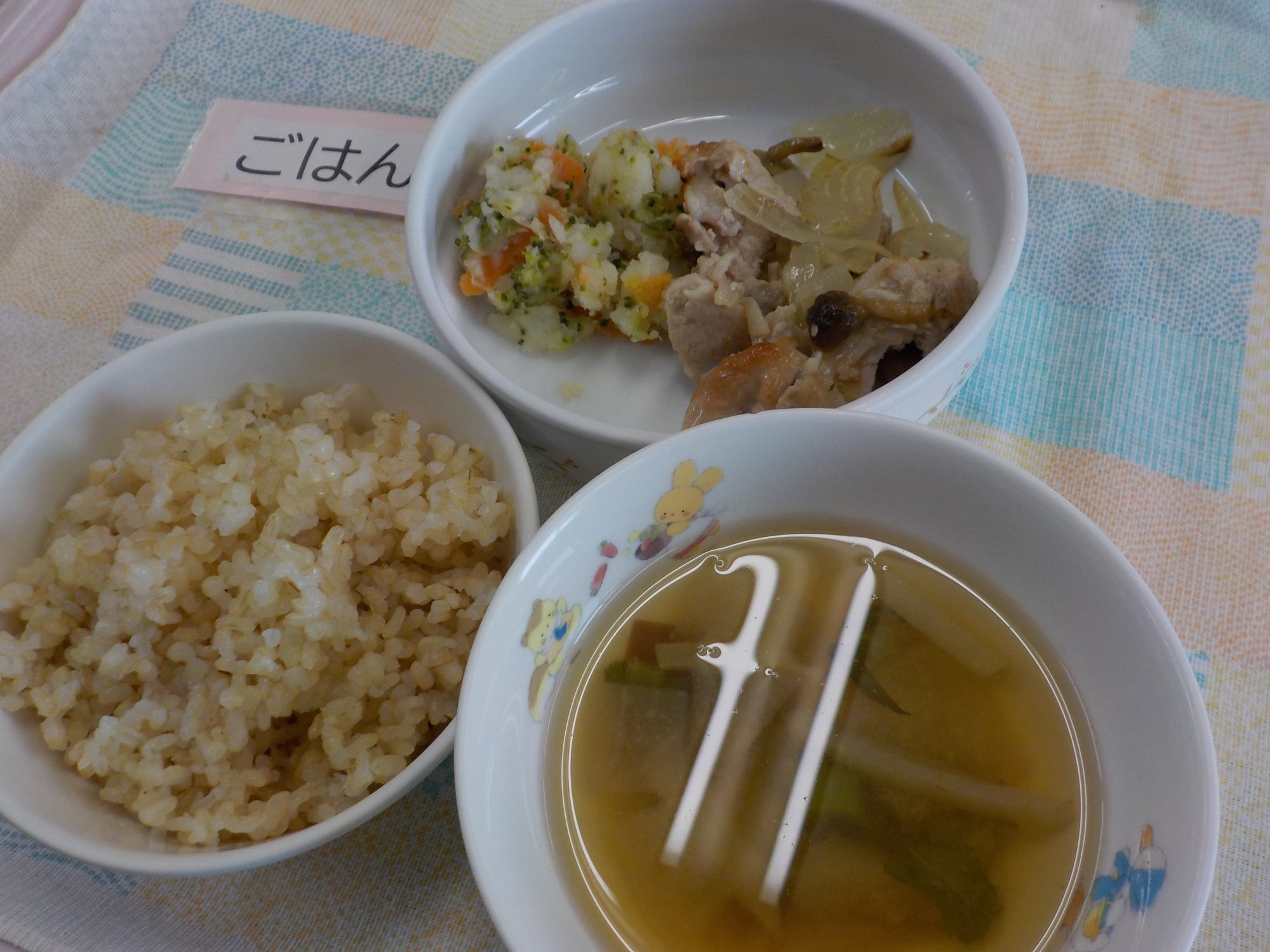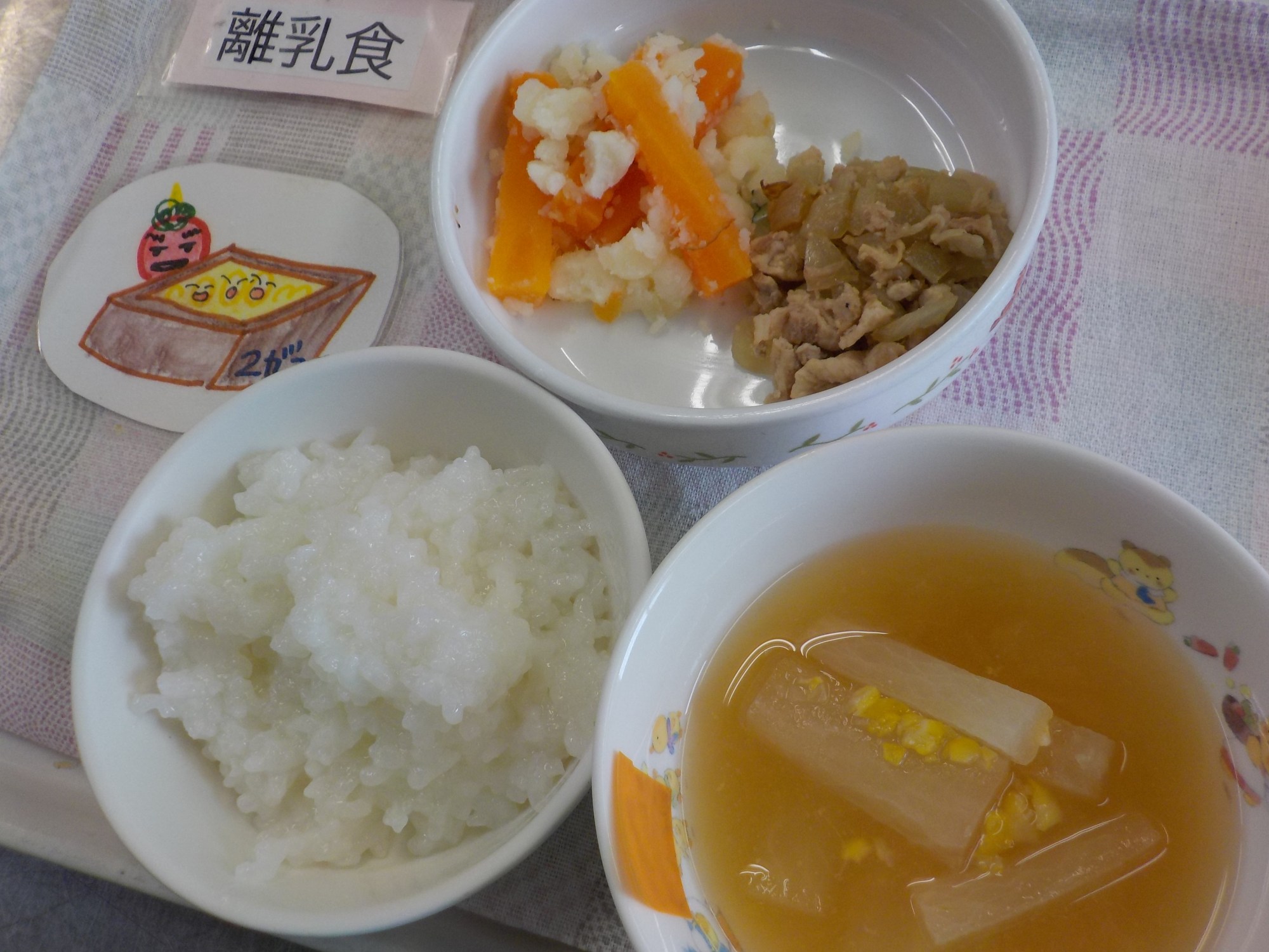【離乳食】豚肉と玉葱の炒め物・和風ポテトサラダ・みそ汁