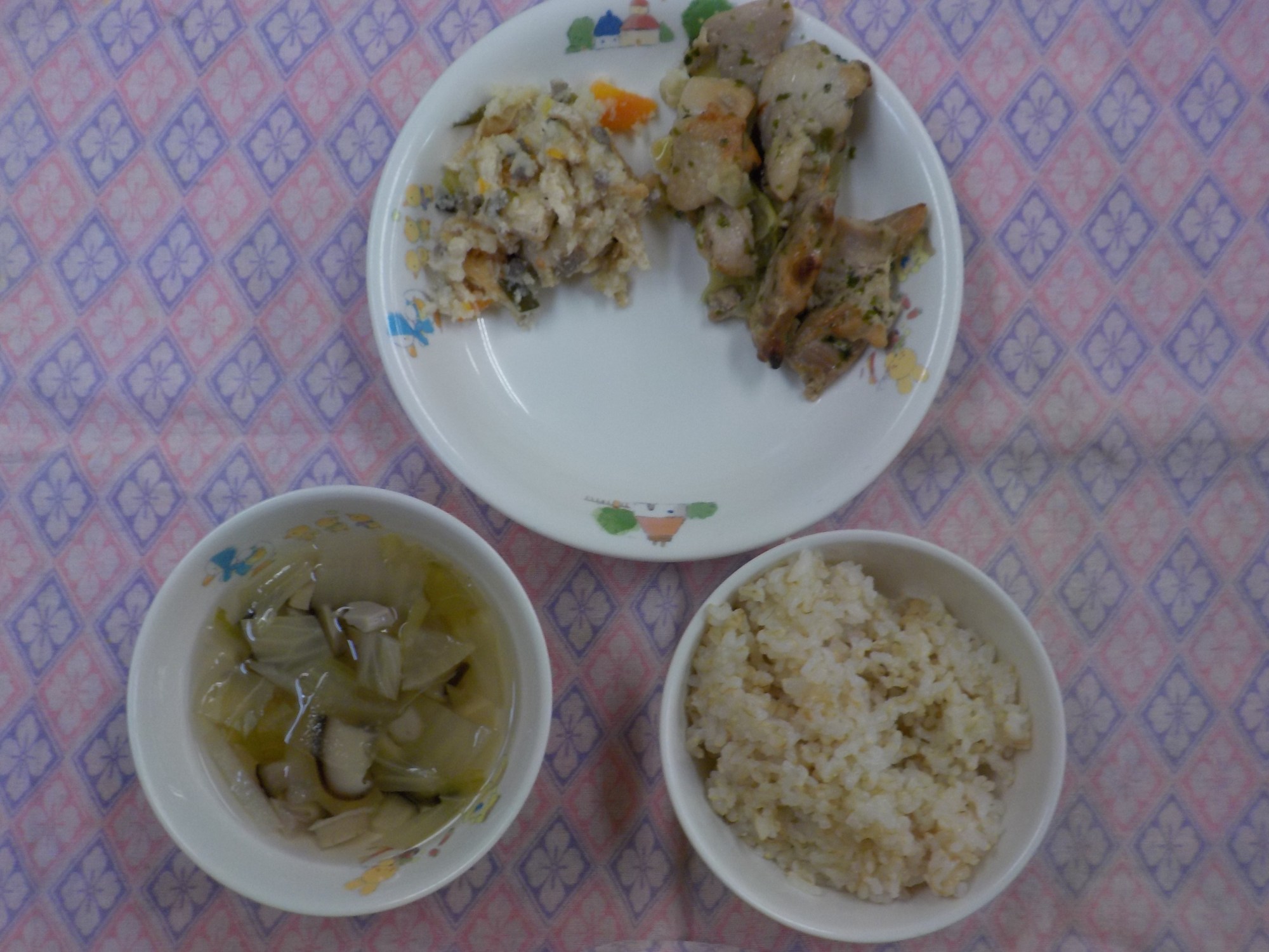 【2/18(水)夕食】鶏肉の青のり焼き・卯の花の炒り煮・煮干しだしのお吸い物