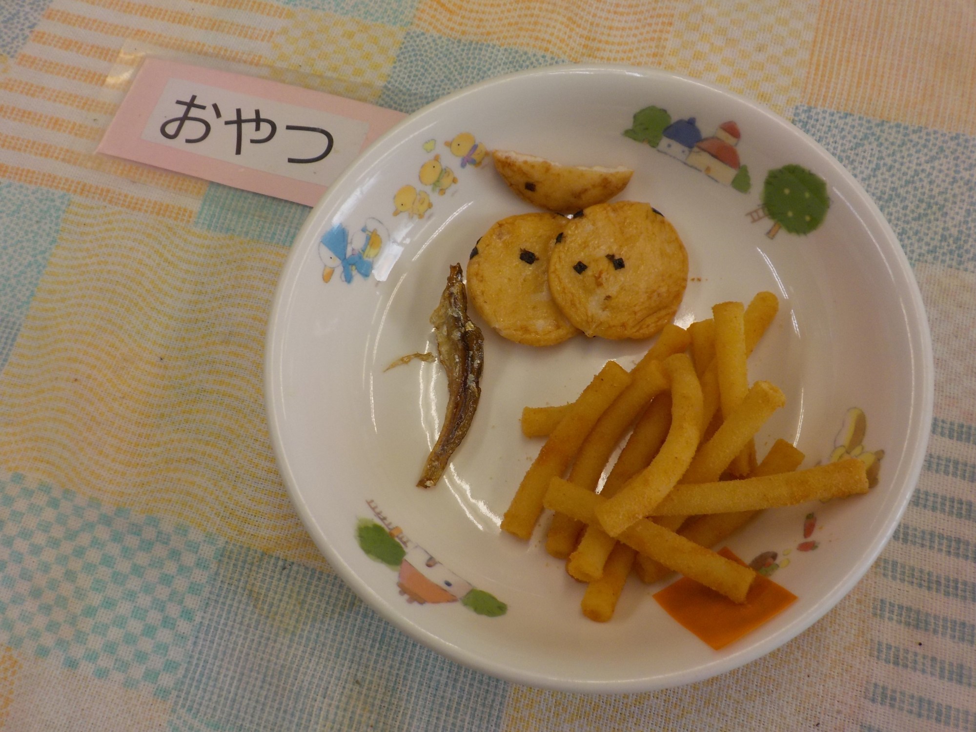 【おやつ】牛乳・マカロニのきな粉和え・甘辛じゃこ・お菓子