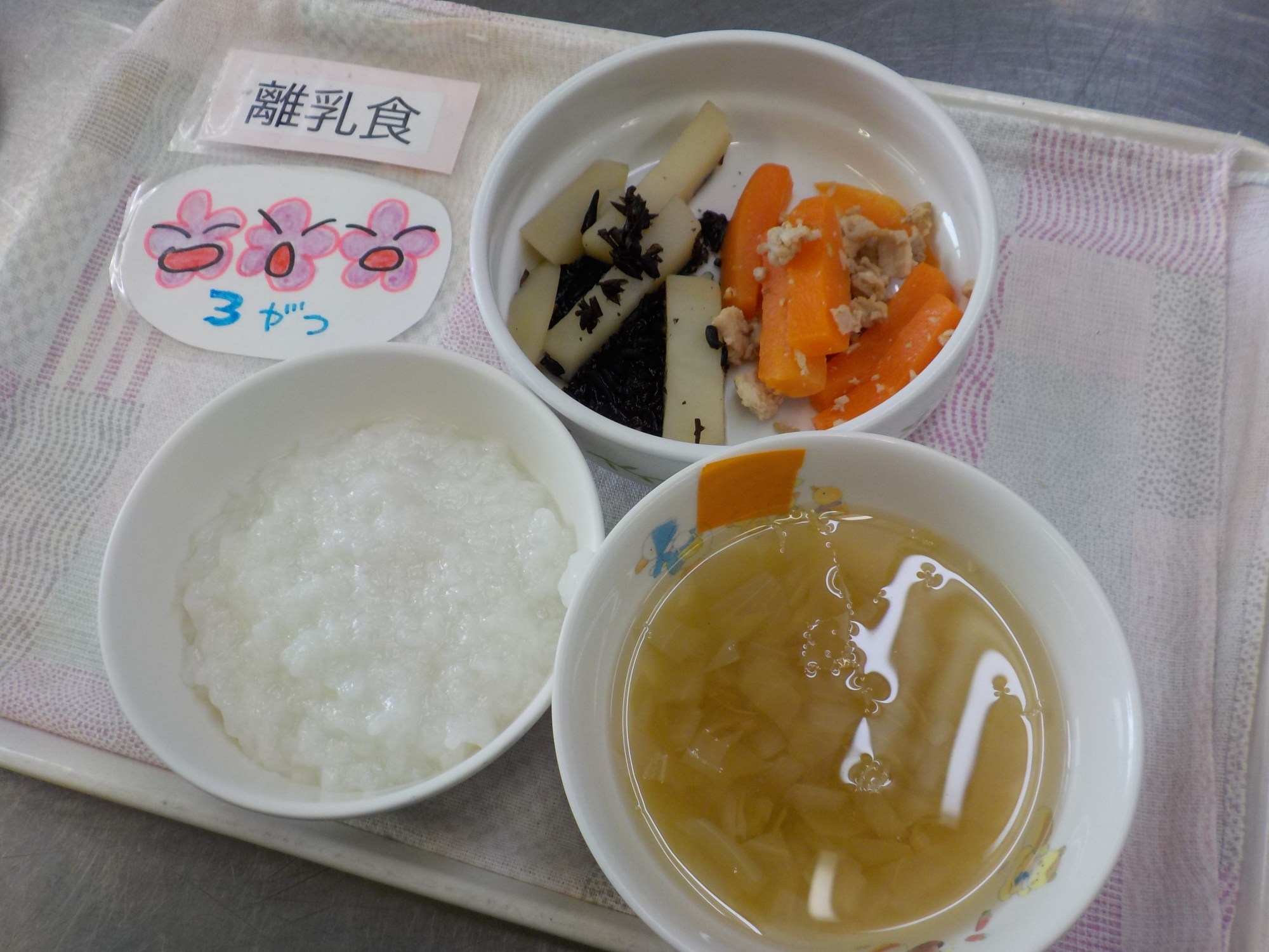 【離乳食】豚肉のおかか焼き・ひじきの煮物・玉葱のみそ汁