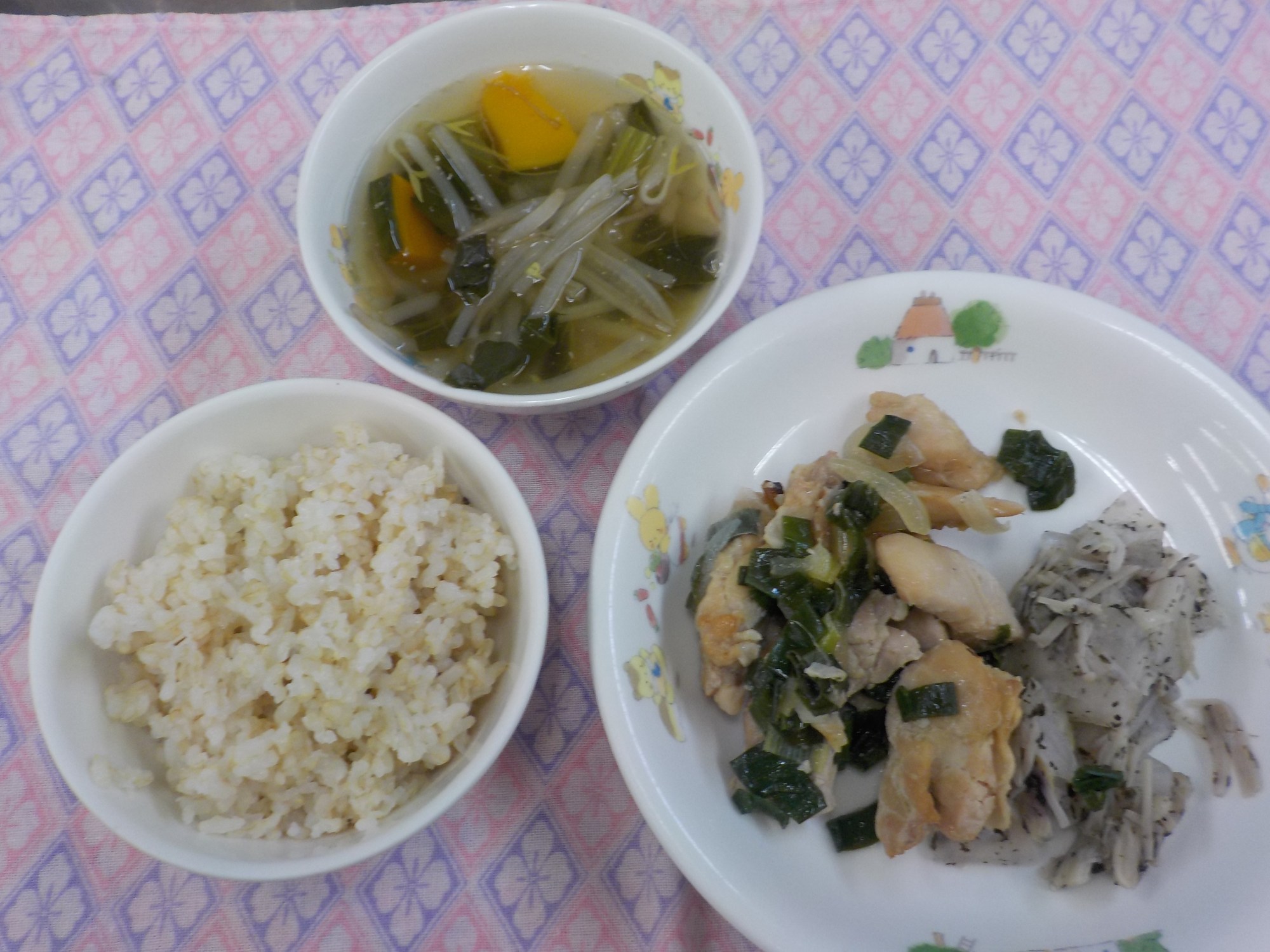 【3/3(火)夕食】鶏肉のねぎ塩焼き・ゆかり和え・ごま入りすまし汁