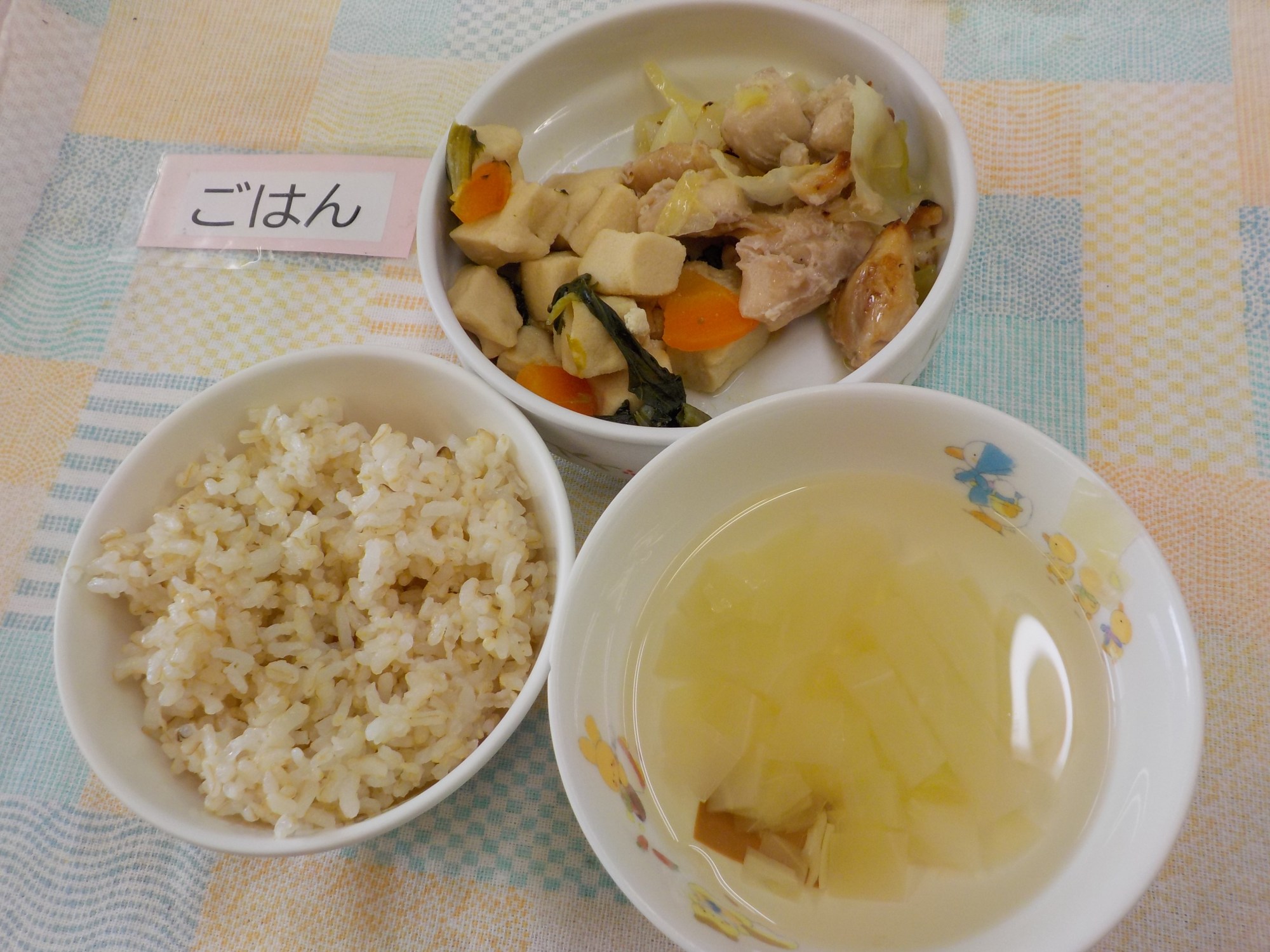 【ごはん】鶏肉の塩だれ焼き・高野豆腐の煮物・刻み昆布のお吸い物