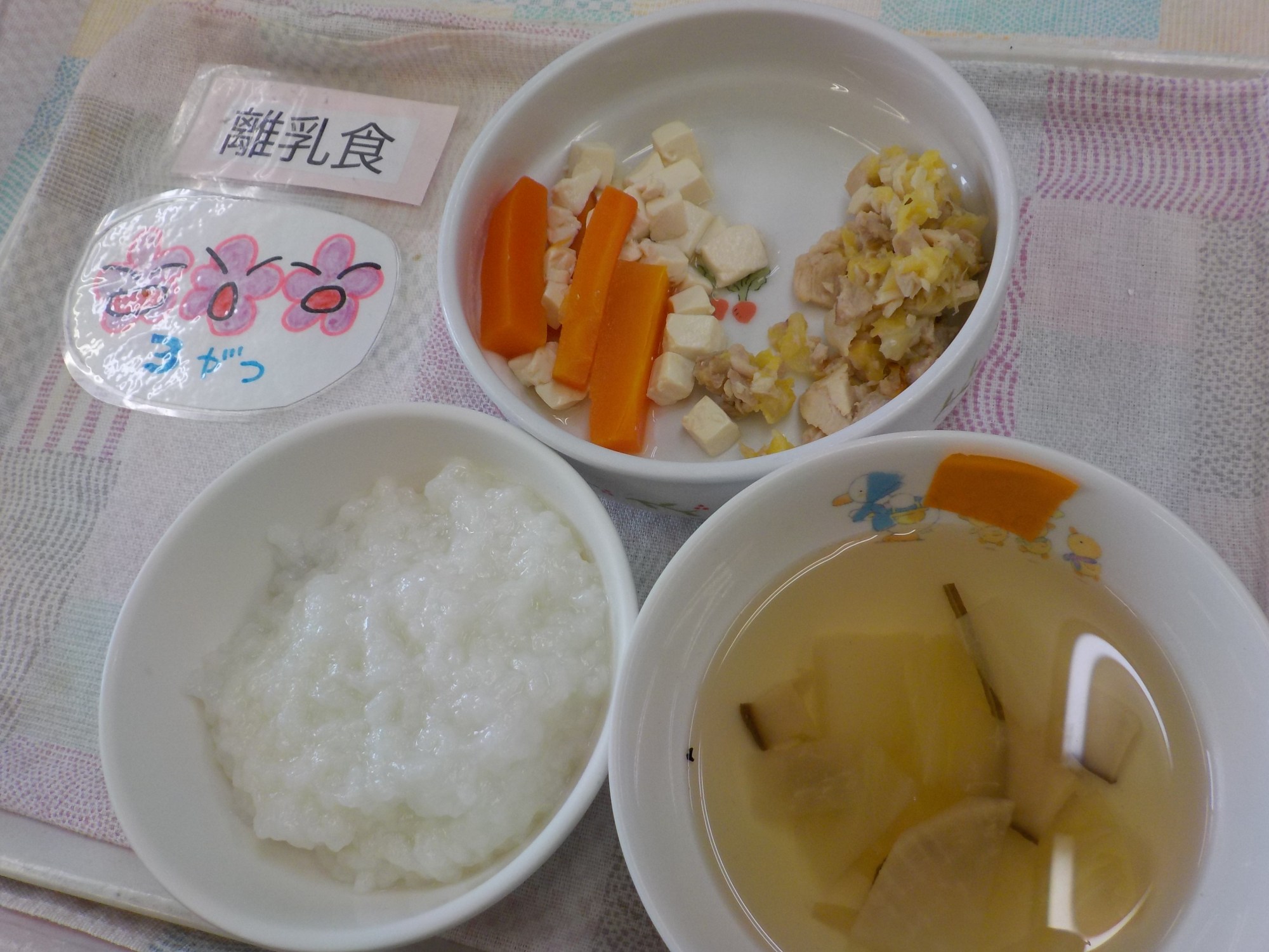 【離乳食】鶏肉の塩だれ焼き・豆腐の煮物・大根のお吸い物