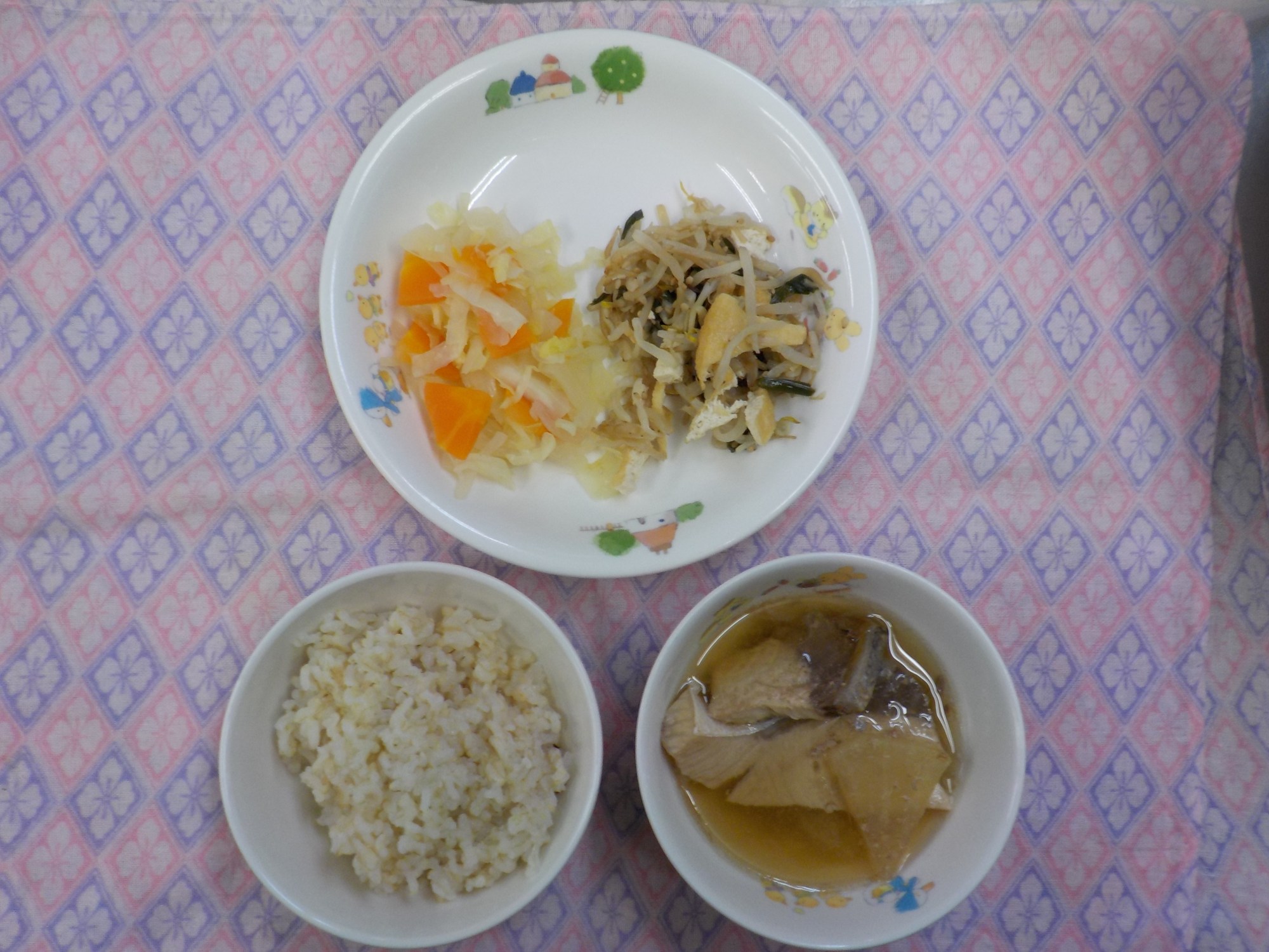 【3/9(月)夕食】ブリ大根・もやしとにらの炒め物・甘酢和え