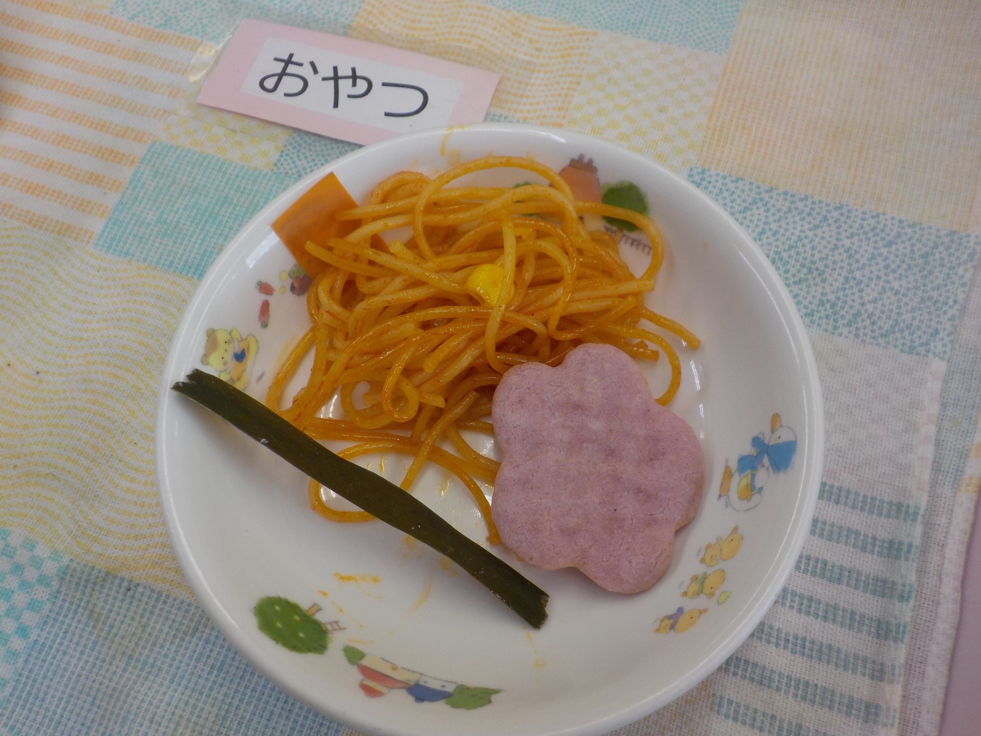【おやつ】牛乳・スパゲティナポリタン・こんぶ・お菓子