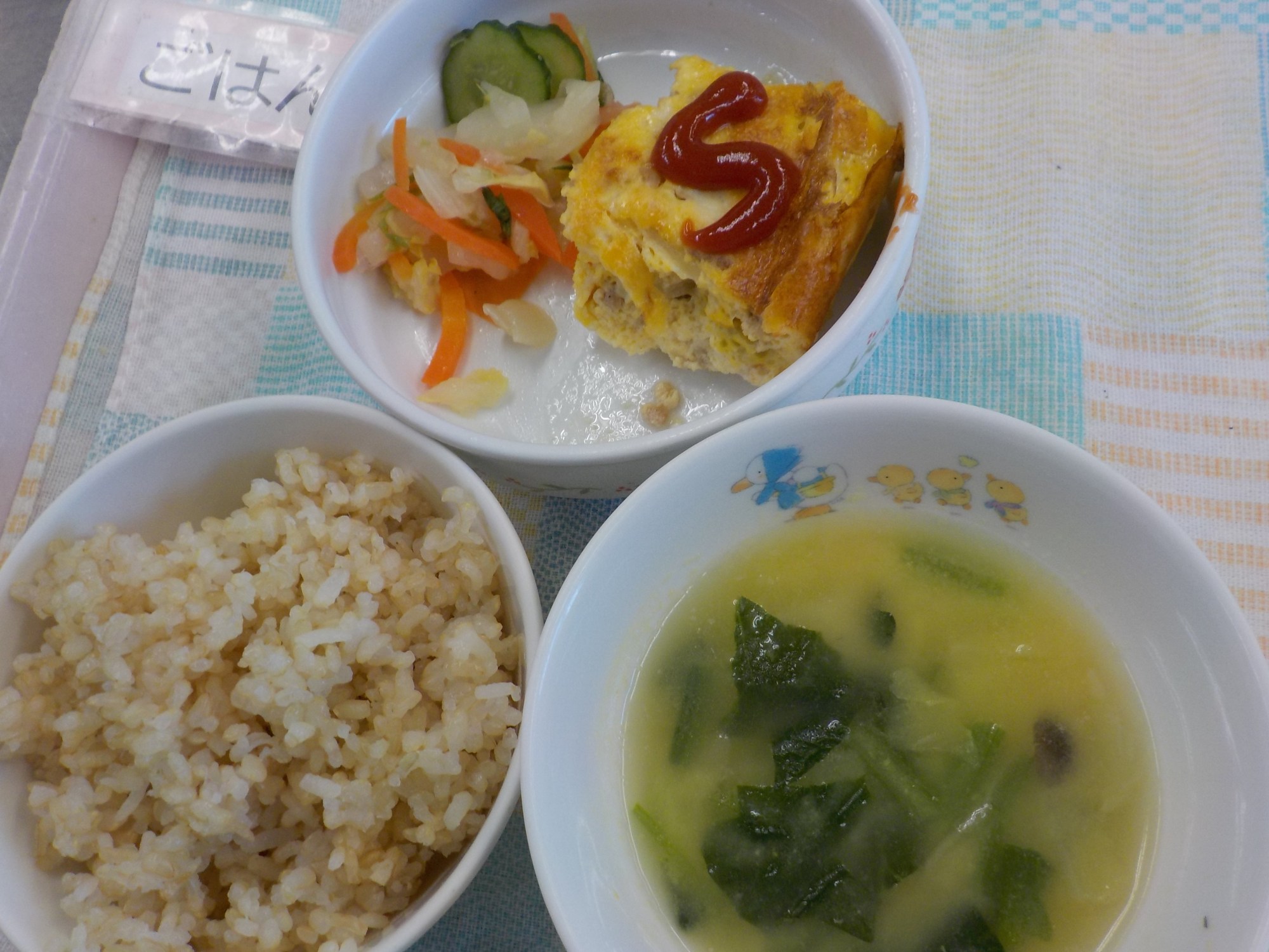 【ごはん】豆腐オムレツ・白菜と人参のサラダ・コーンスープ