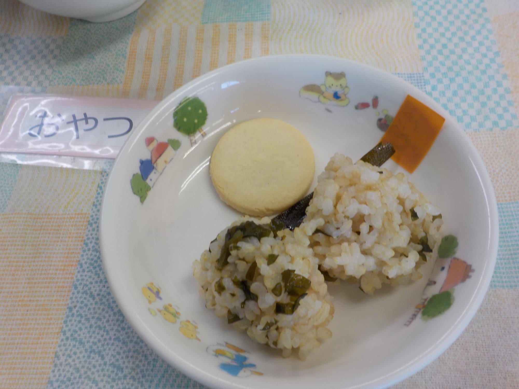 【おやつ】牛乳・わかめおにぎり・ごまこんぶ・お菓子