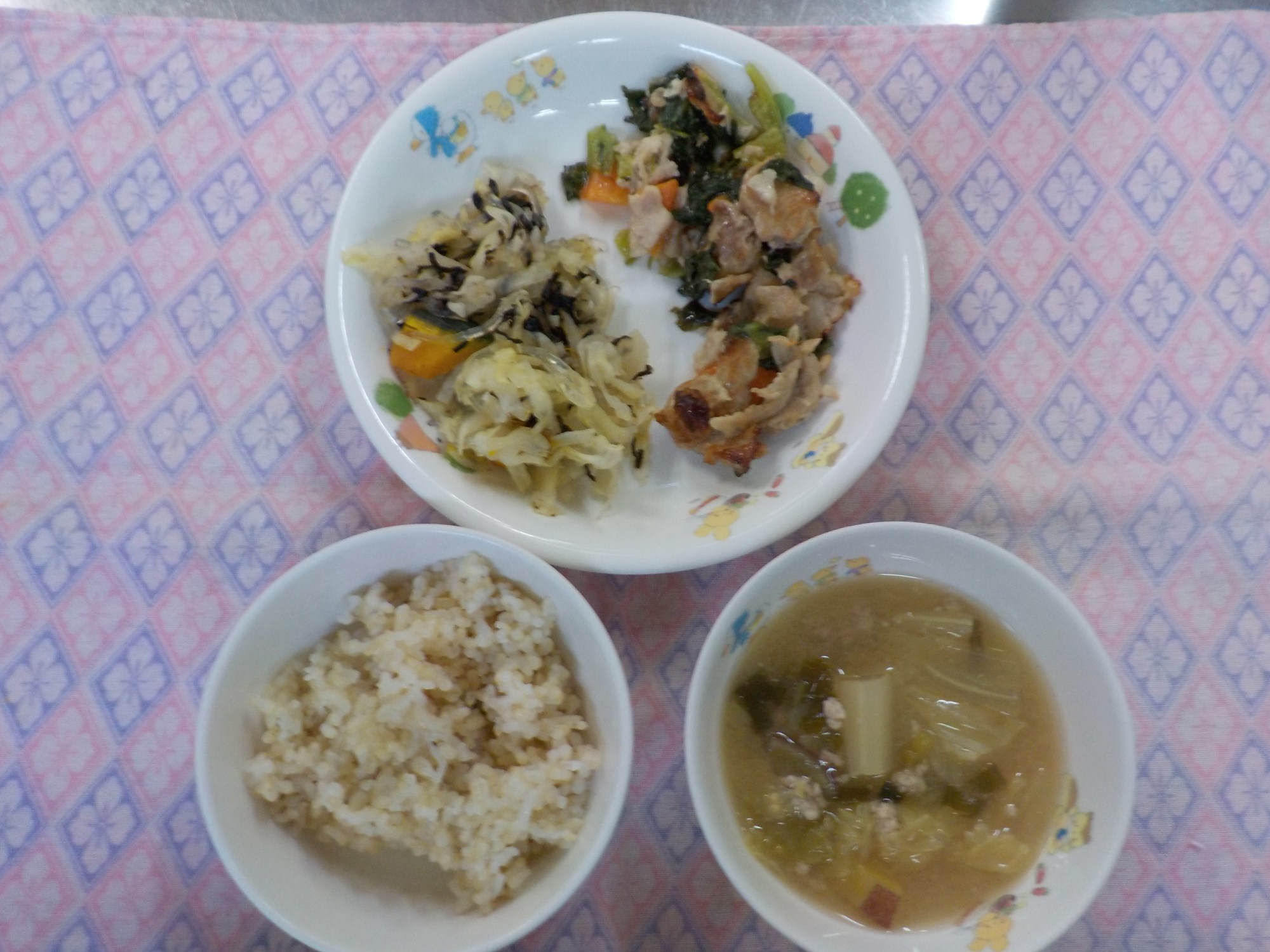 【3/16(月)夕食】豚肉とチンゲン菜のあん炒め・のりと春雨の和え物・そぼろみそ汁