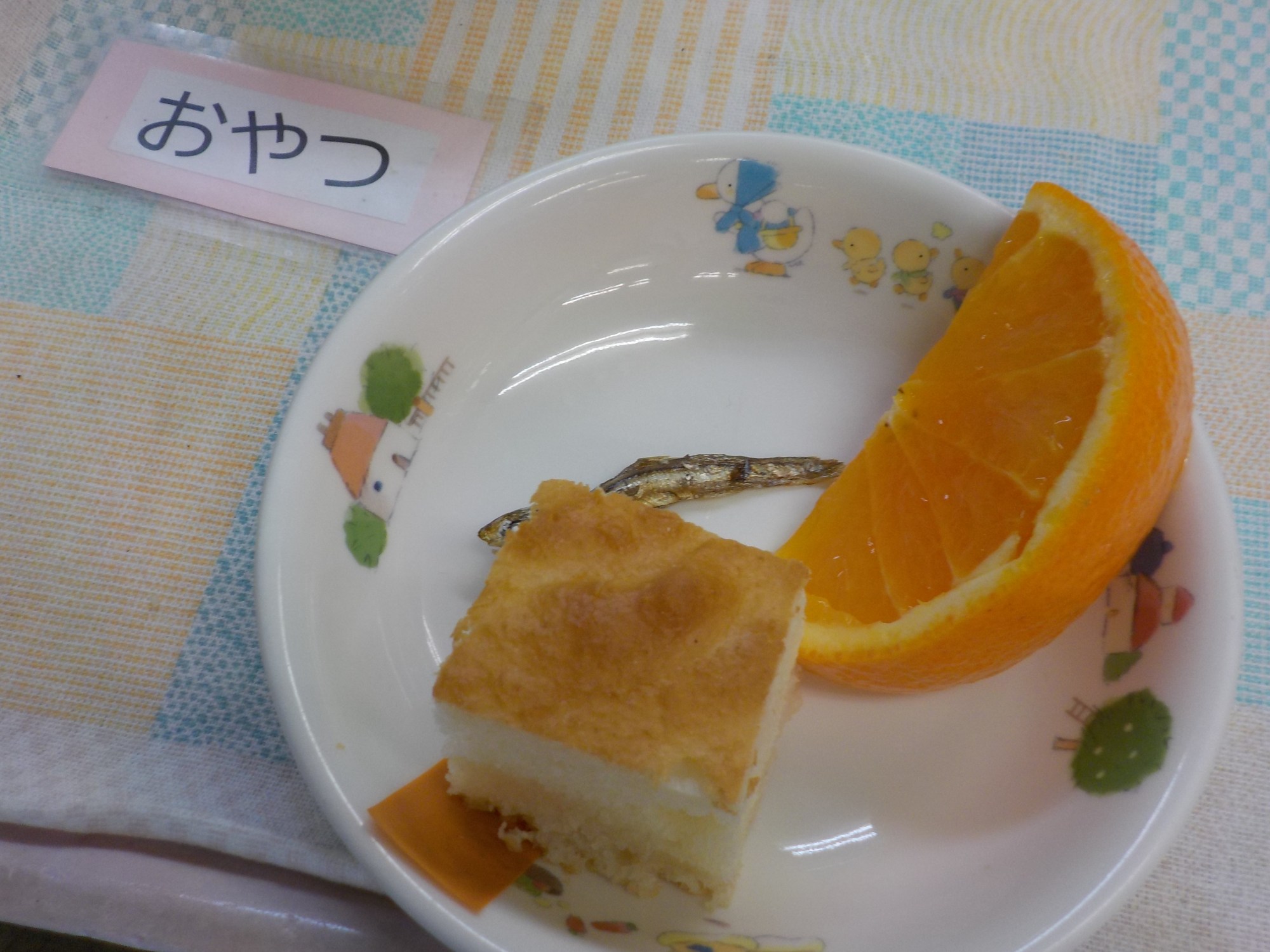 【おやつ】牛乳・レモンケーキ・甘辛じゃこ・くだもの(きよみオレンジ)