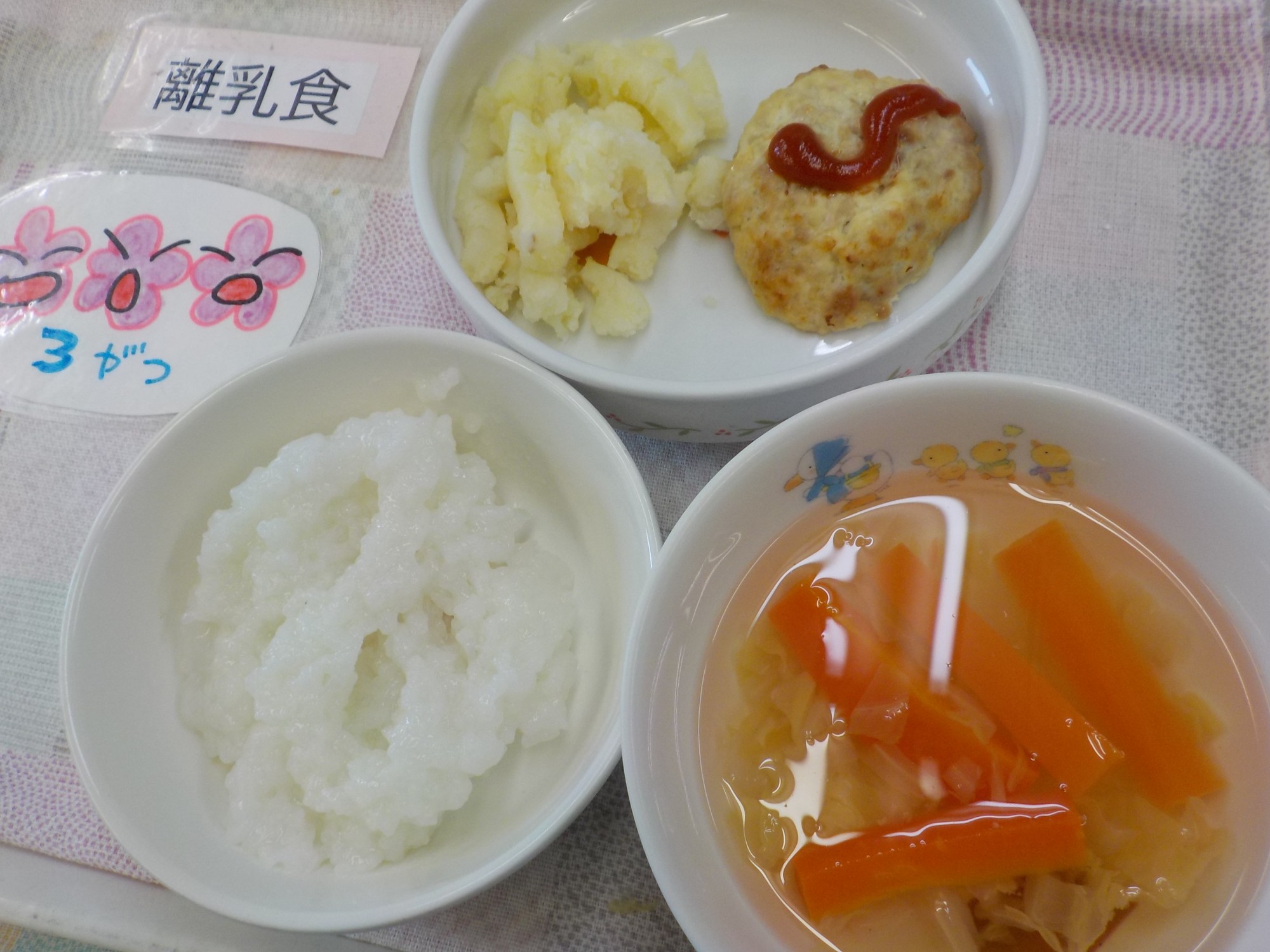 【離乳食】ハンバーグ・マッシュポテト・野菜スープ