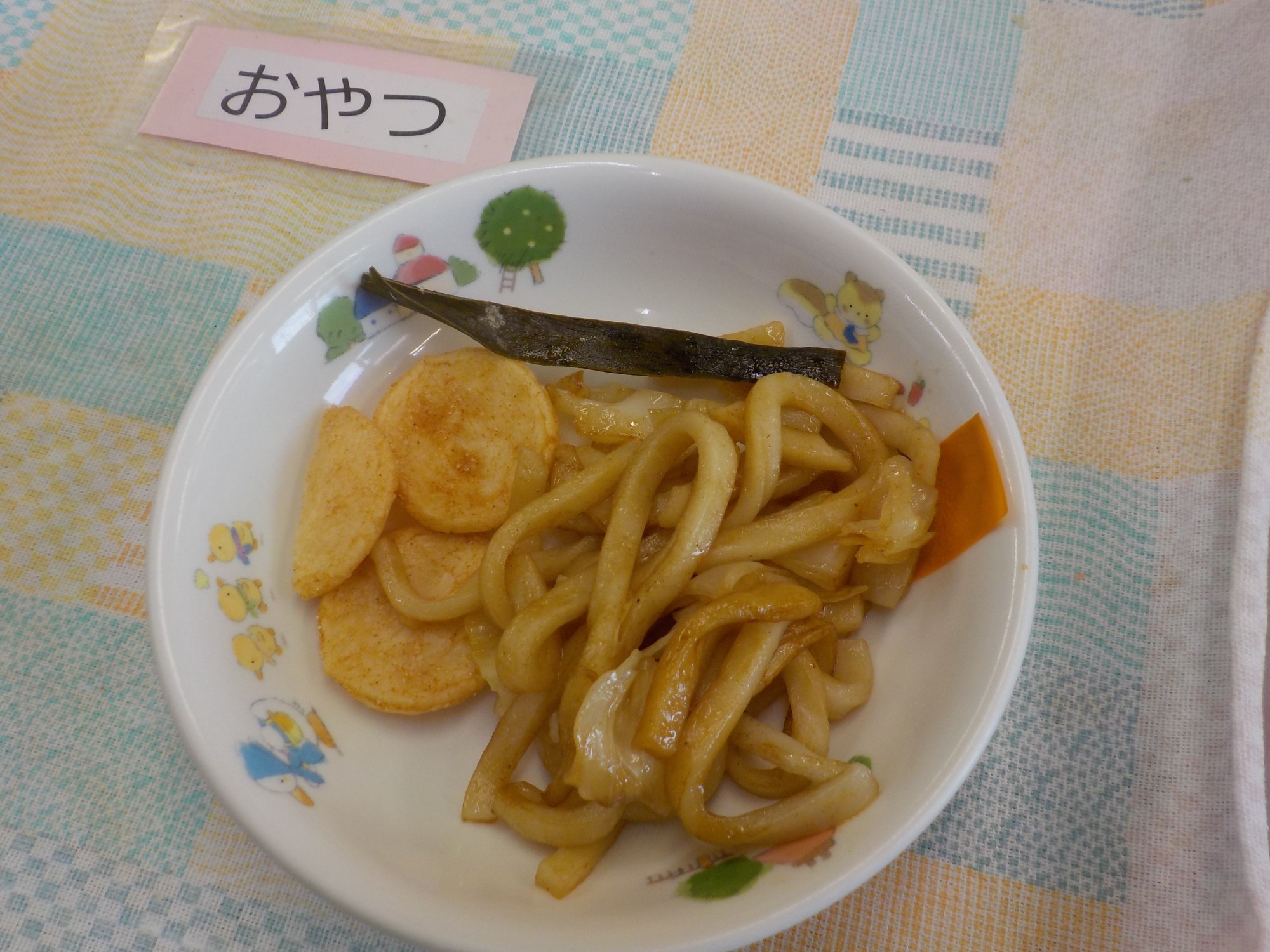 【おやつ】牛乳・ソース焼きうどん・酢こんぶ・お菓子