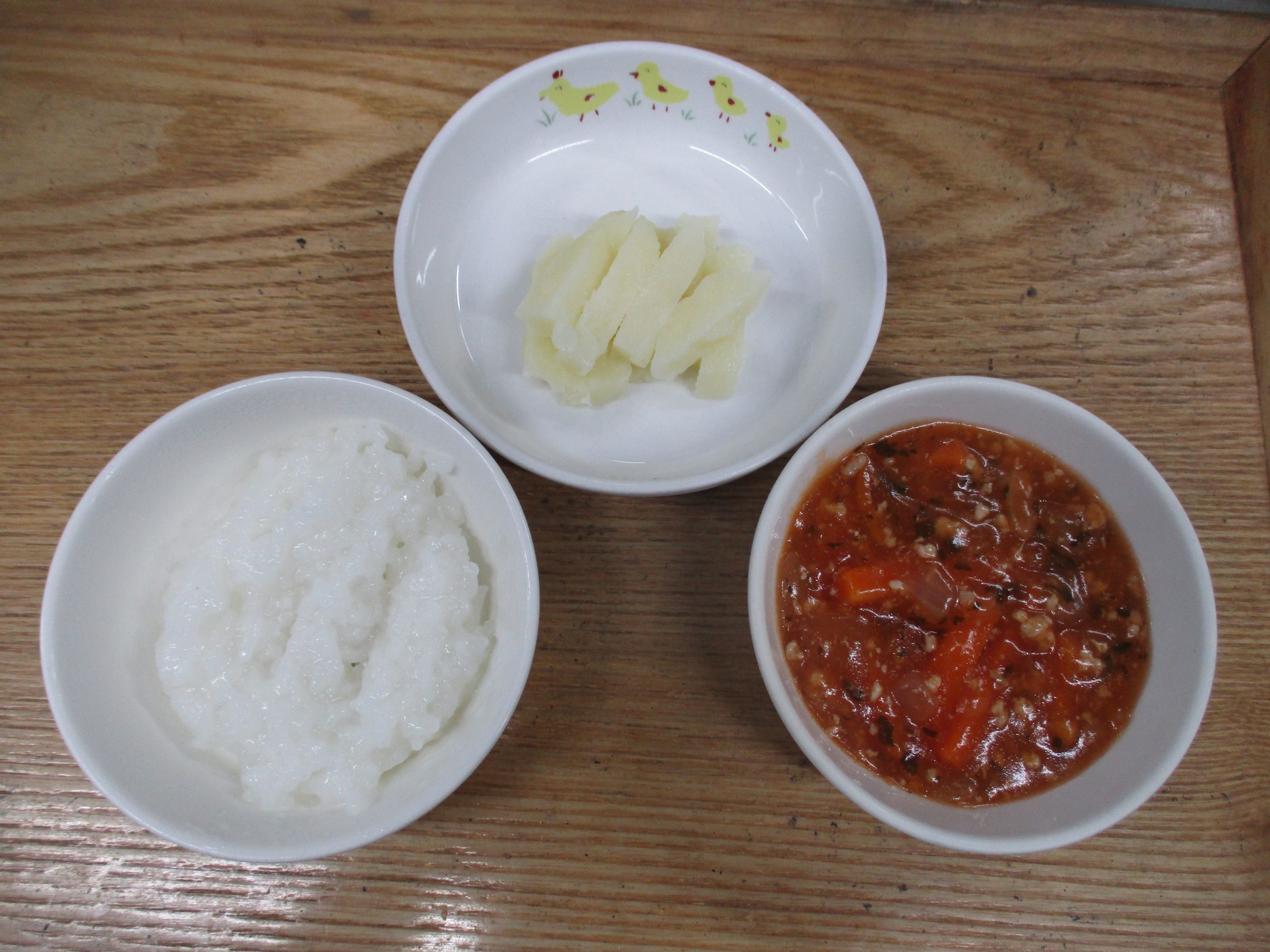 今日のごはんとおやつを紹介することで園での食育について知ってもらう