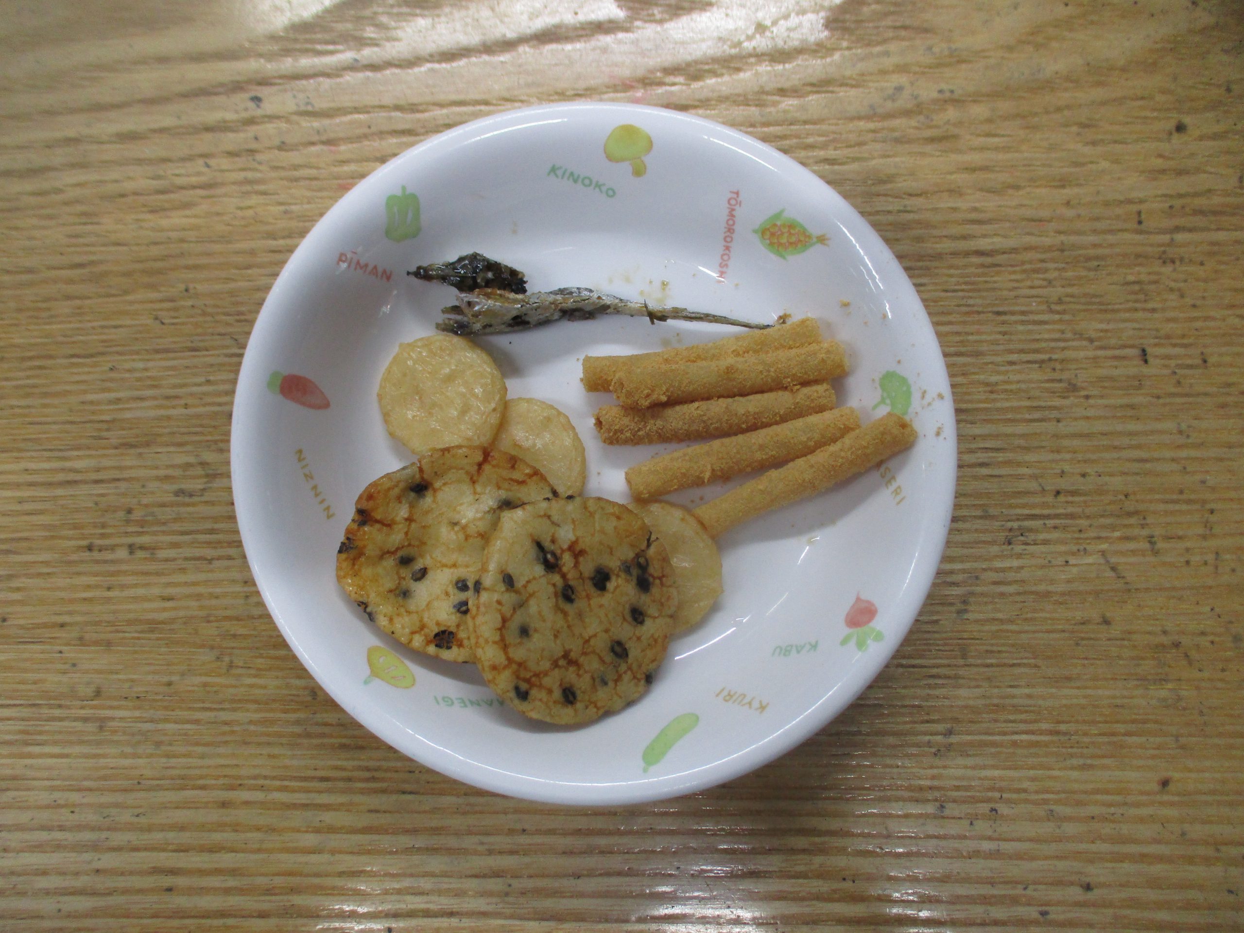 今日のごはんとおやつを紹介することで園での食育について知ってもらう