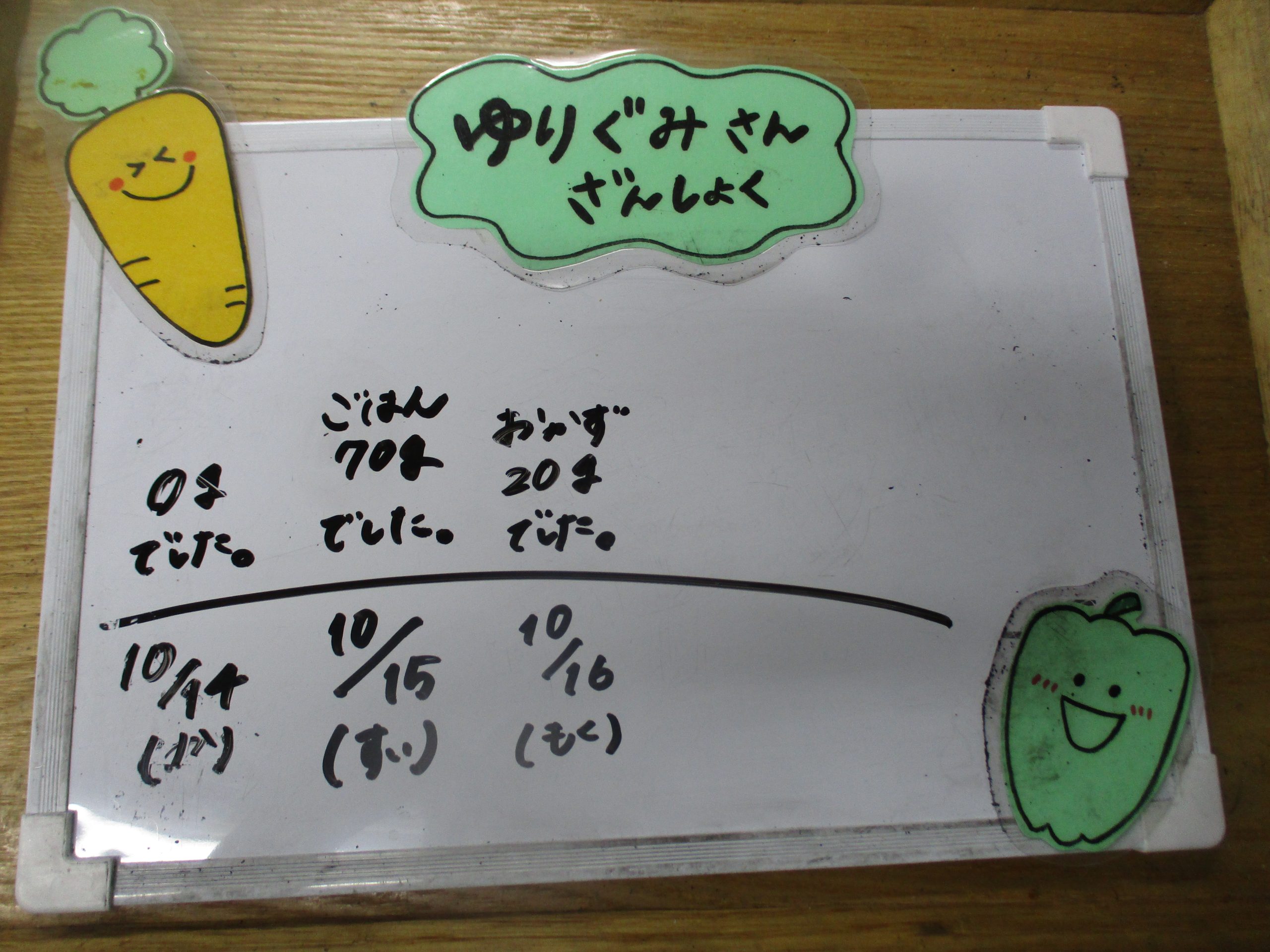 今日のごはんとおやつを紹介することで園での食育について知ってもらう