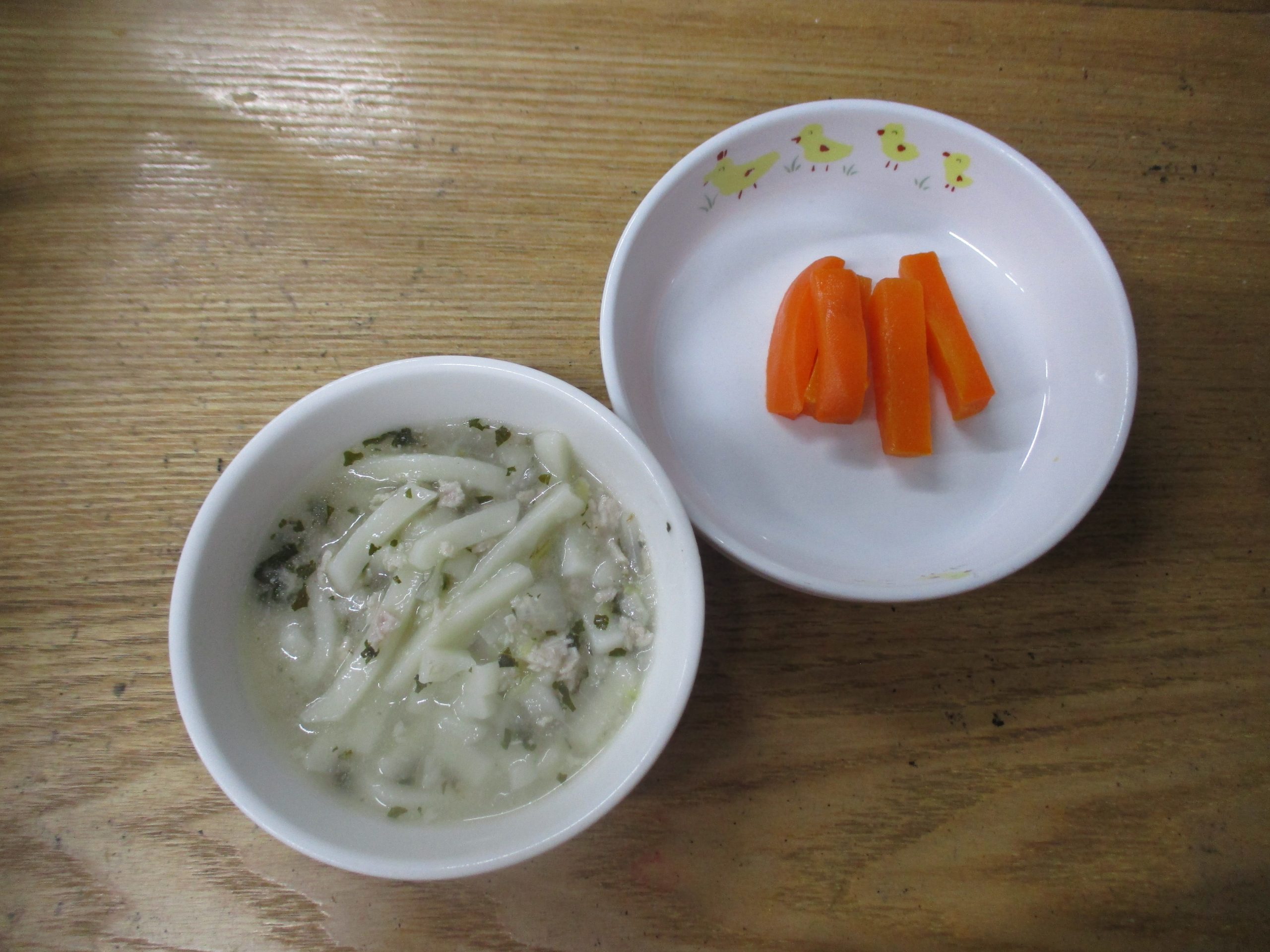 今日のごはんとおやつを紹介することで園での食育について知ってもらう