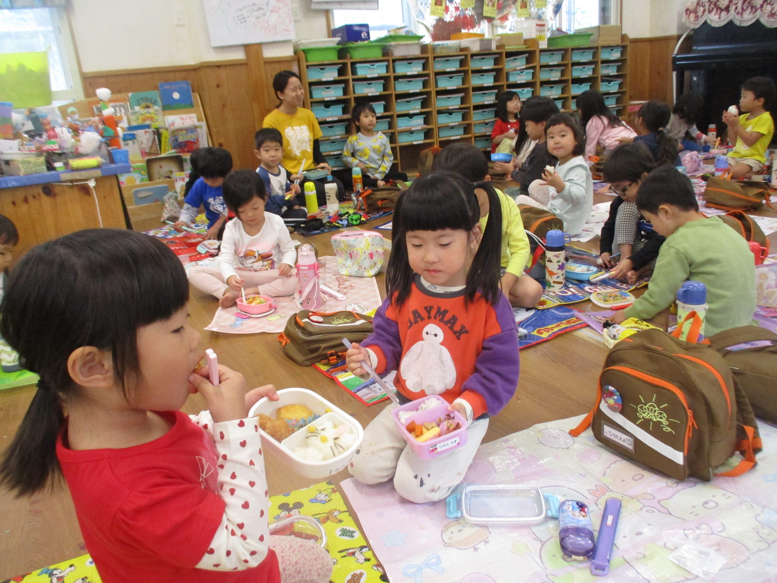 今日のごはんとおやつを紹介することで園での食育について知ってもらう
