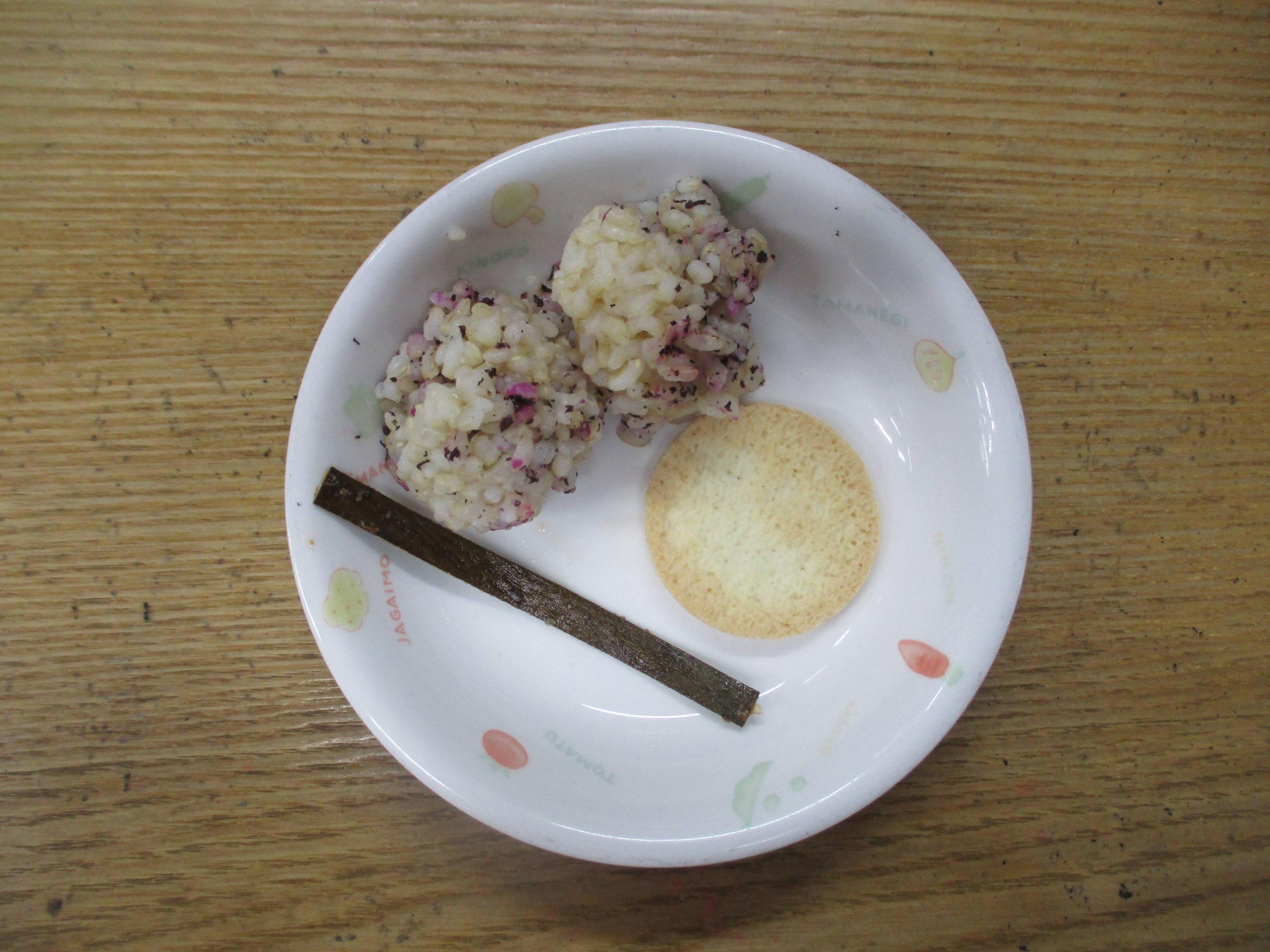 今日のごはんとおやつを紹介することで園での食育について知ってもらう