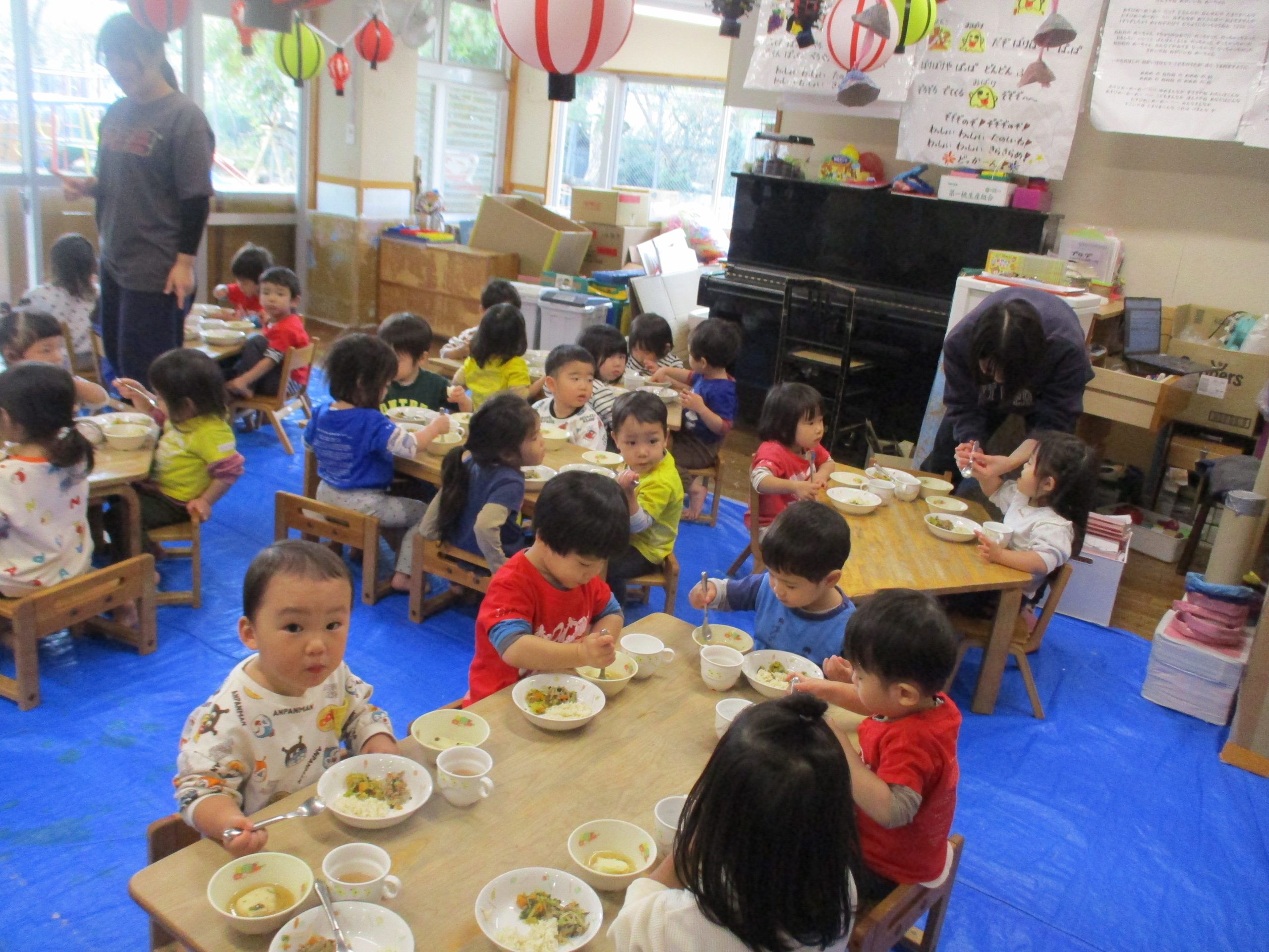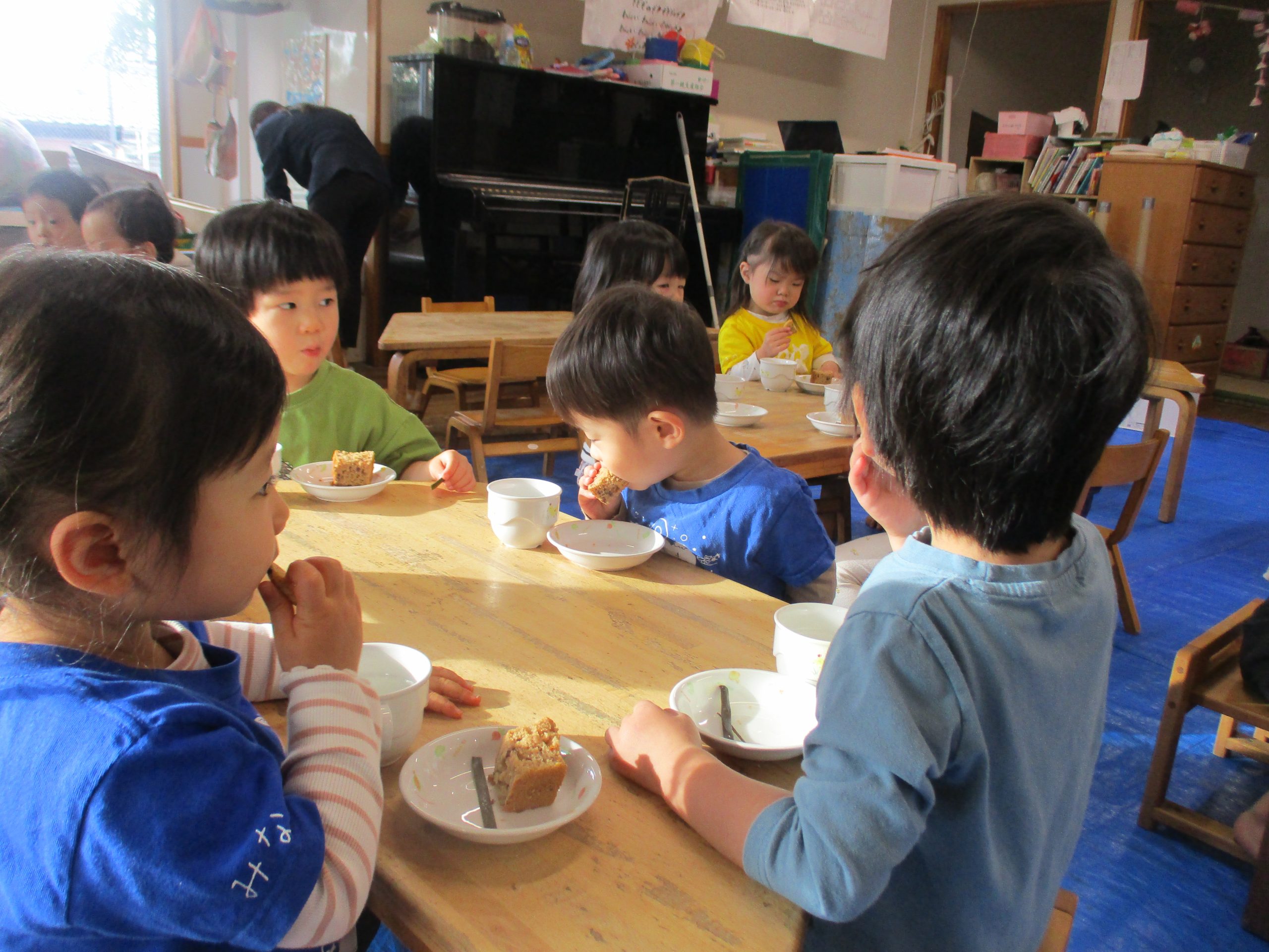 今日のごはんとおやつを紹介することで園での食育について知ってもらう