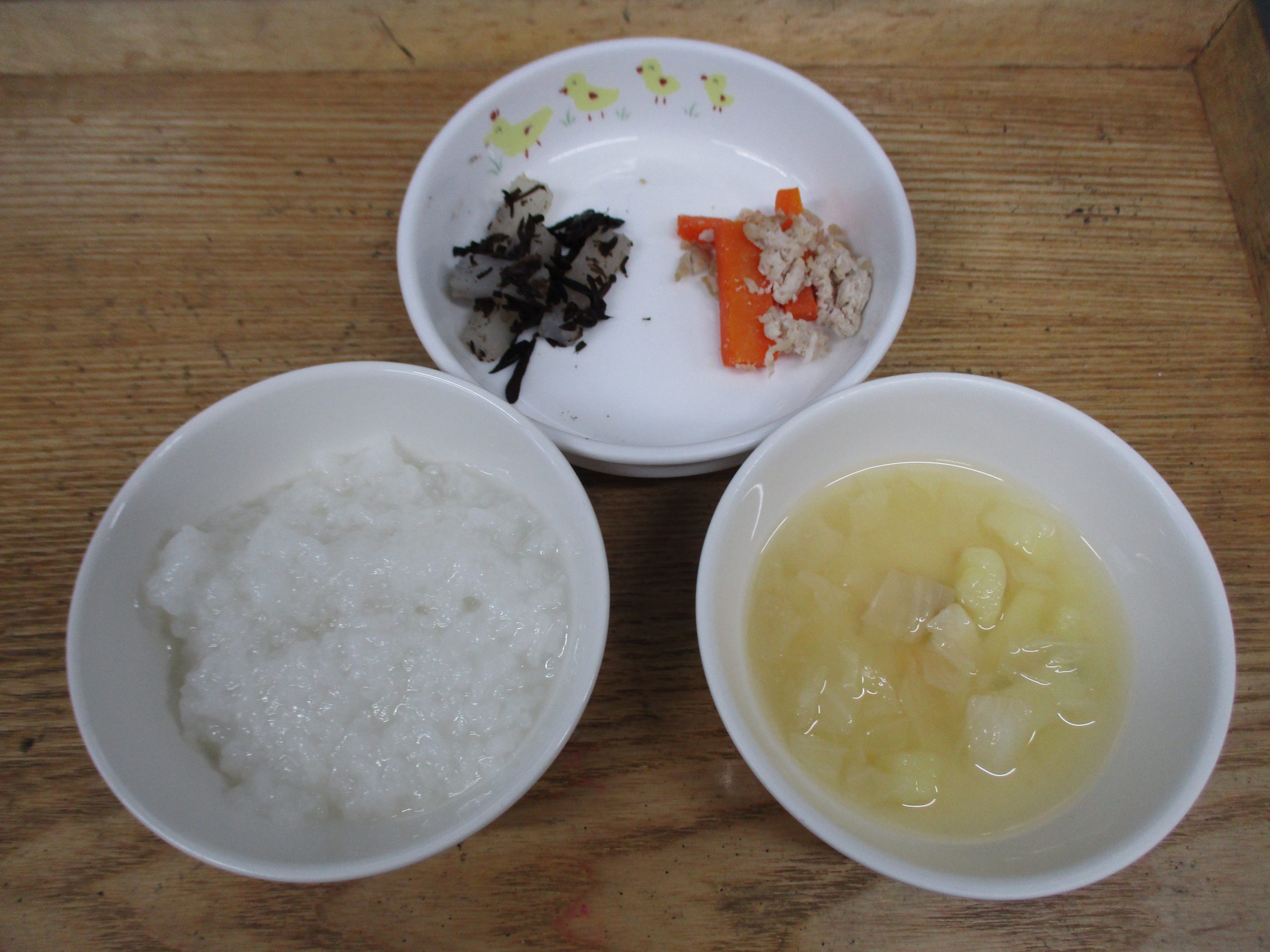 今日のごはんとおやつを紹介することで園での食育について知ってもらう