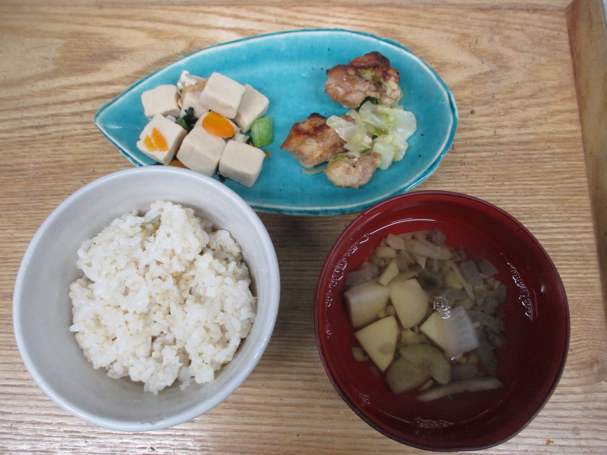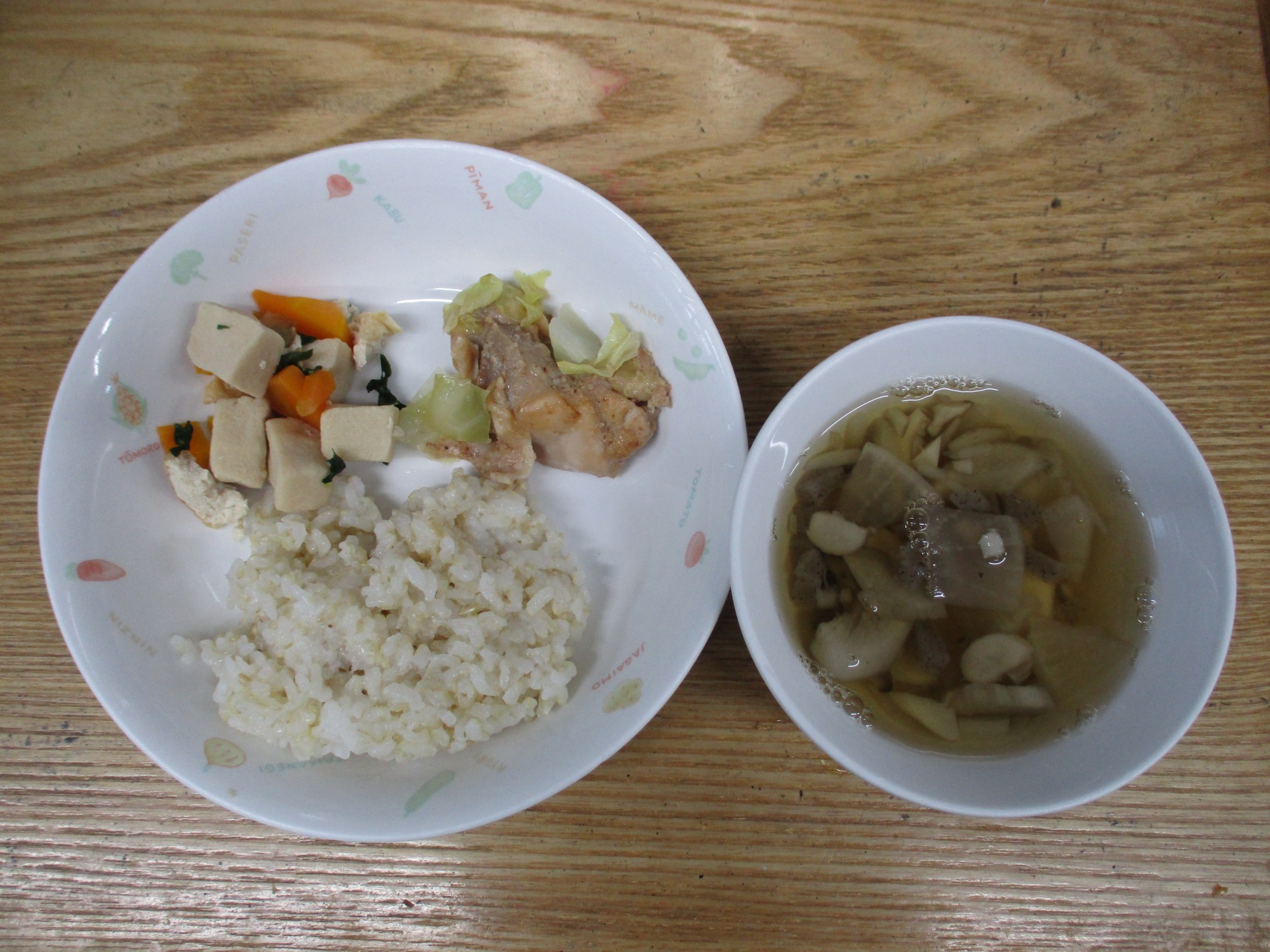 1枚目:【普通食:以上児】鶏肉のおかか焼き・高野豆腐の煮物・けんちん汁