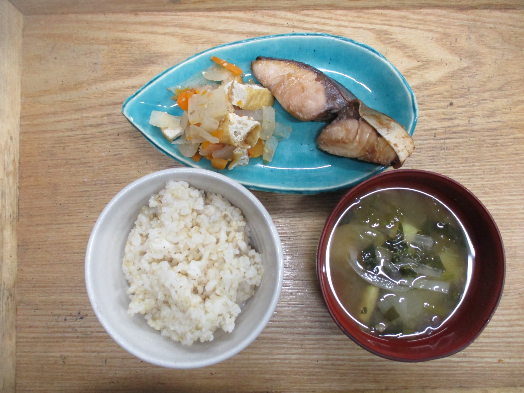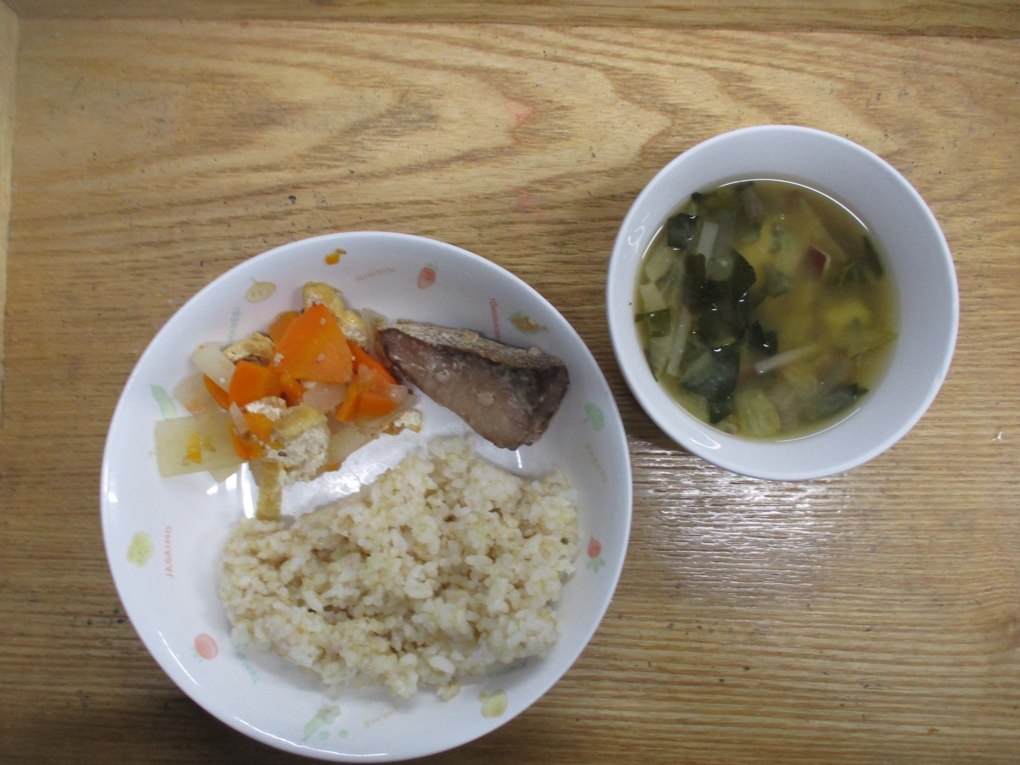 1枚目:【普通食:以上児】ブリの照り焼き・大根のごま塩炒め・さつま汁