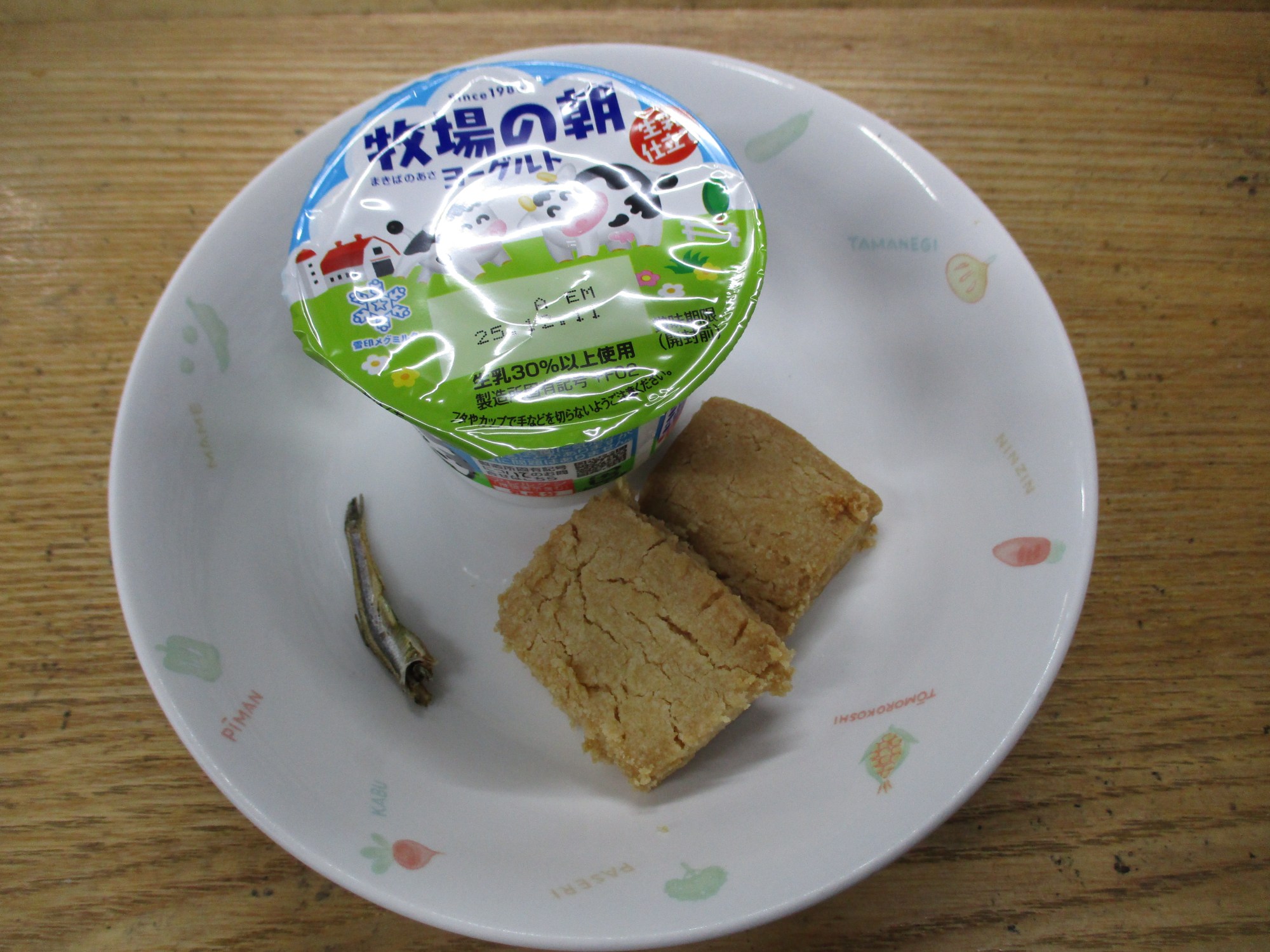 2枚目:【おやつ:以上児】ヨーグルト・青のりじゃこ・ショートブレッド