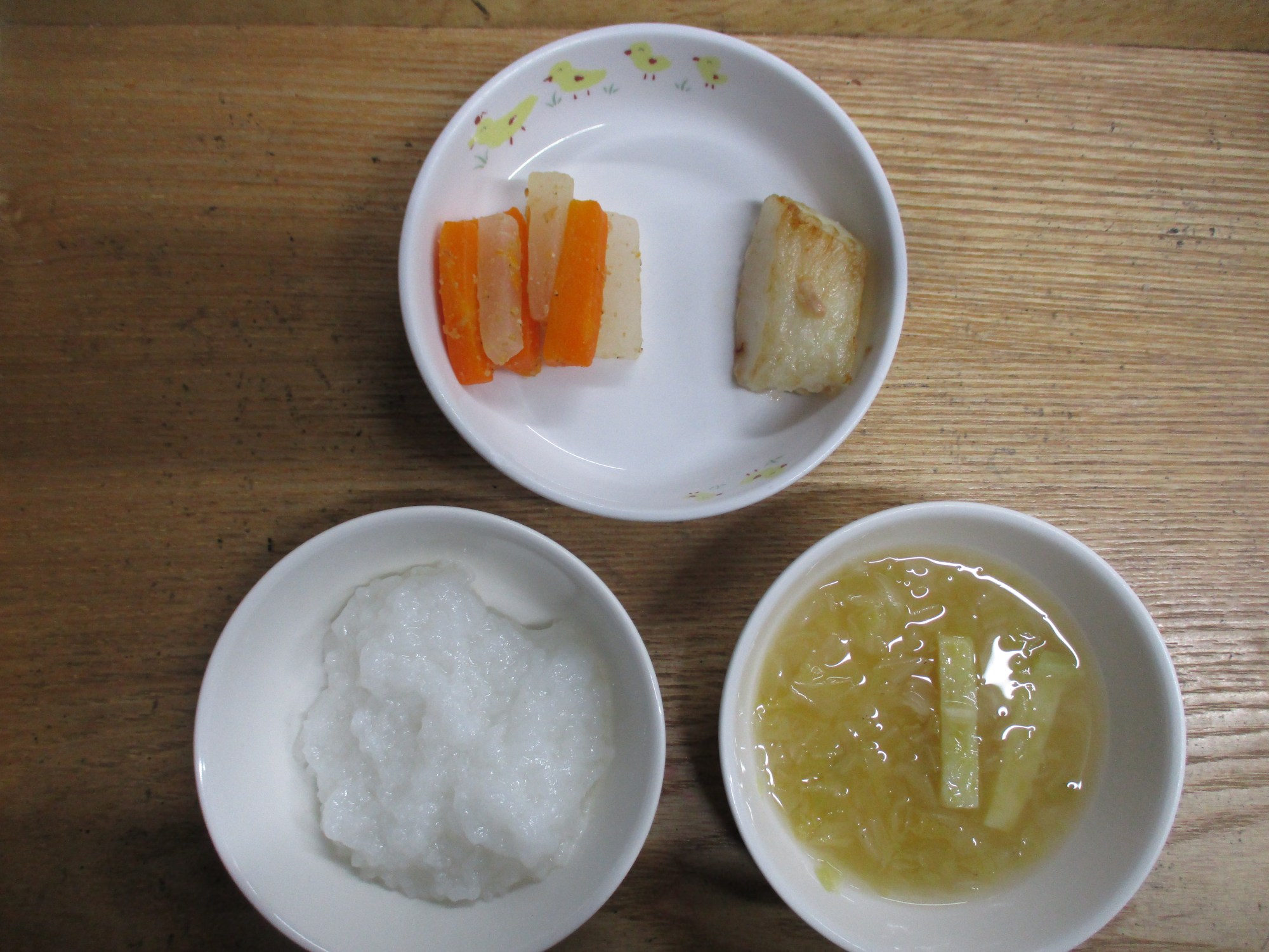 4枚目:【離乳食】カレイの照り焼き・大根のごま塩炒め・さつま汁