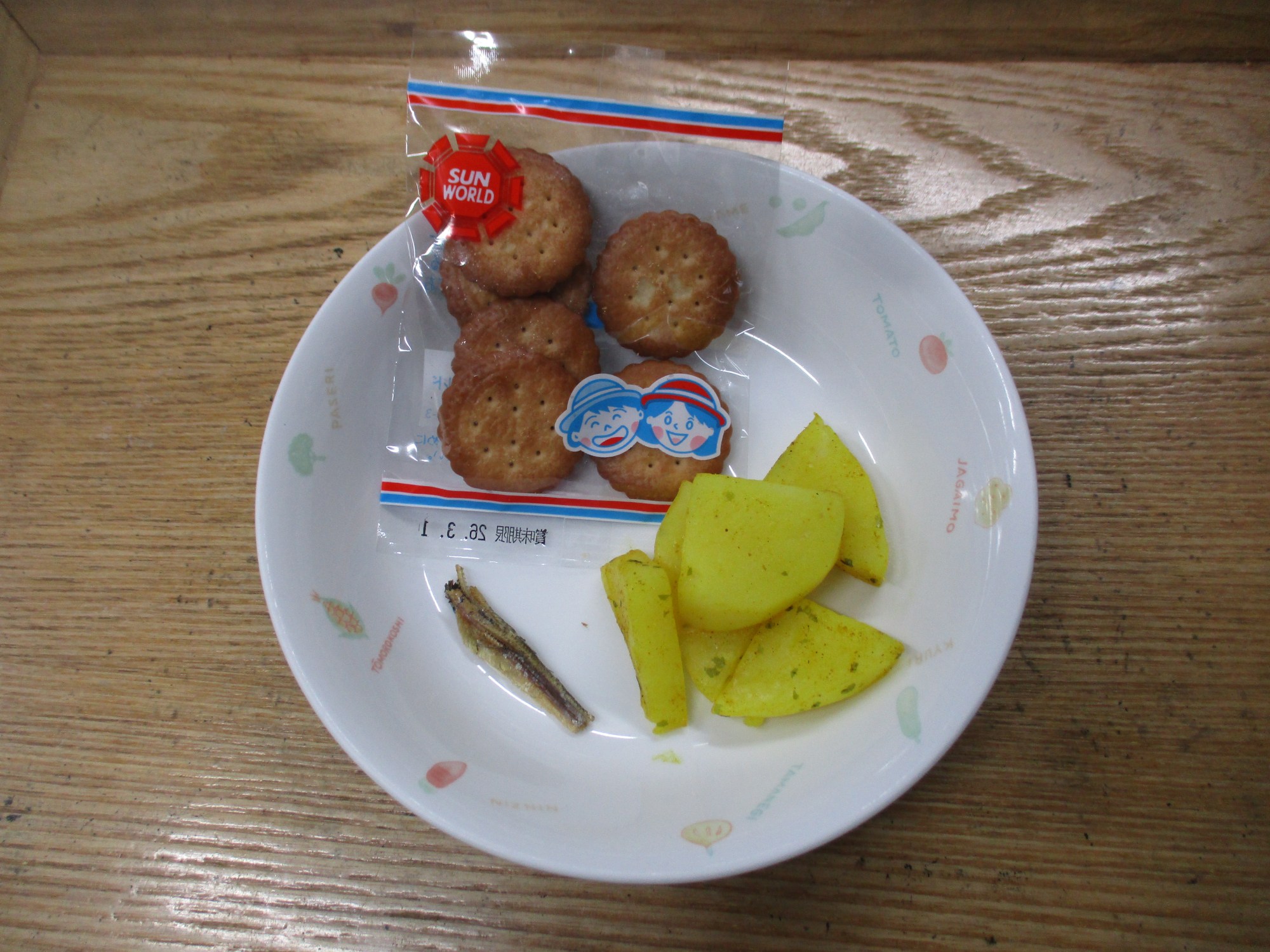 2枚目:【おやつ:以上児】カレーポテト・炒りじゃこ・お菓子