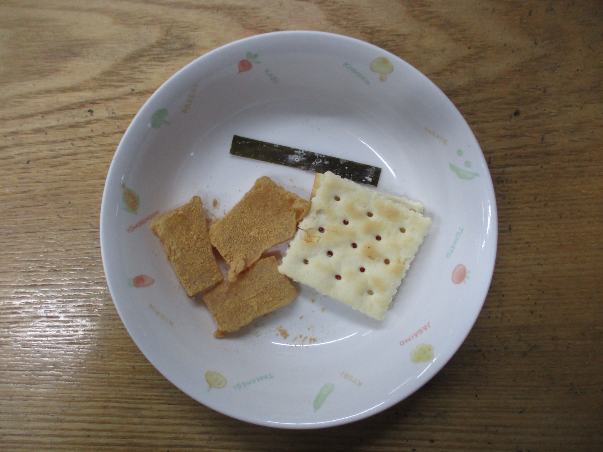2枚目:【おやつ:以上児】くずもち・こんぶ・クラッカージャムサンド