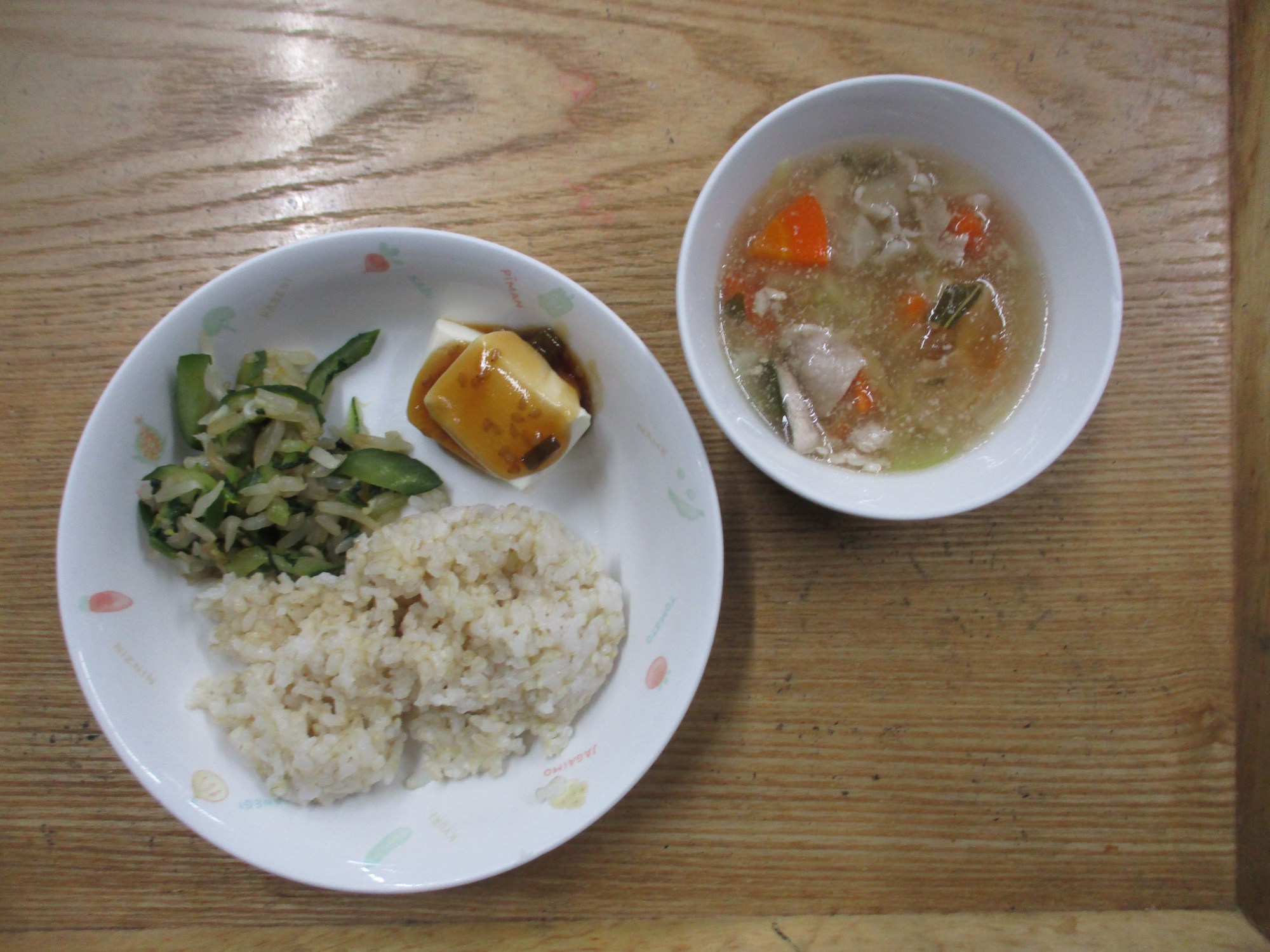 1枚目:【普通食:以上児】八宝菜・蒸し豆腐の香味ソースがけ・もやしの中華和え