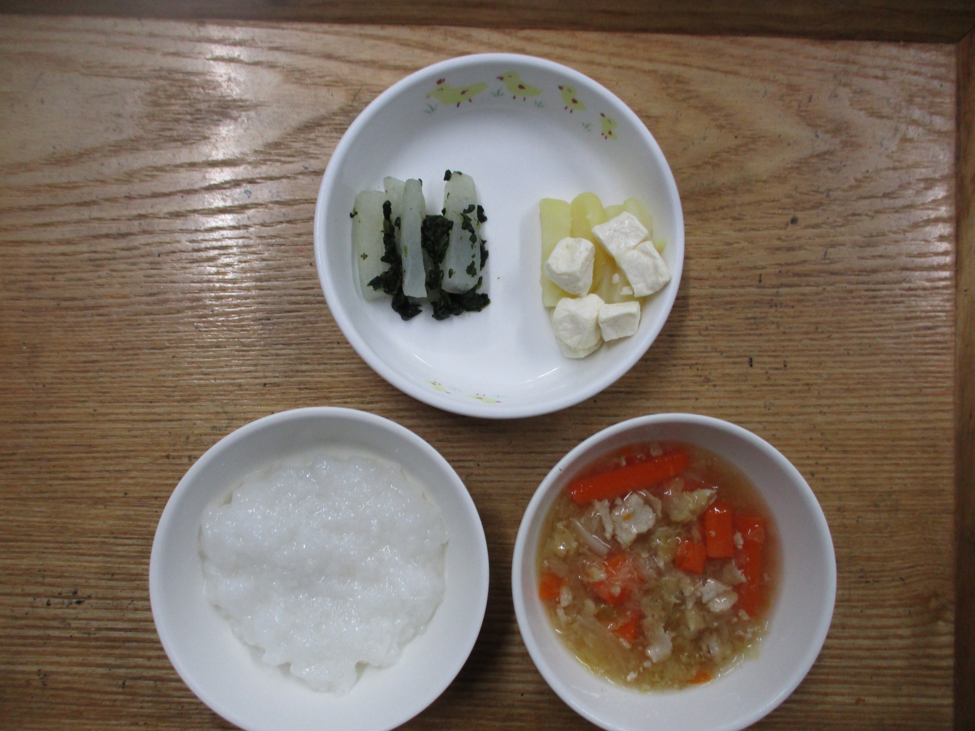 4枚目:【離乳食】八宝菜・豆腐の煮物・大根の塩和え