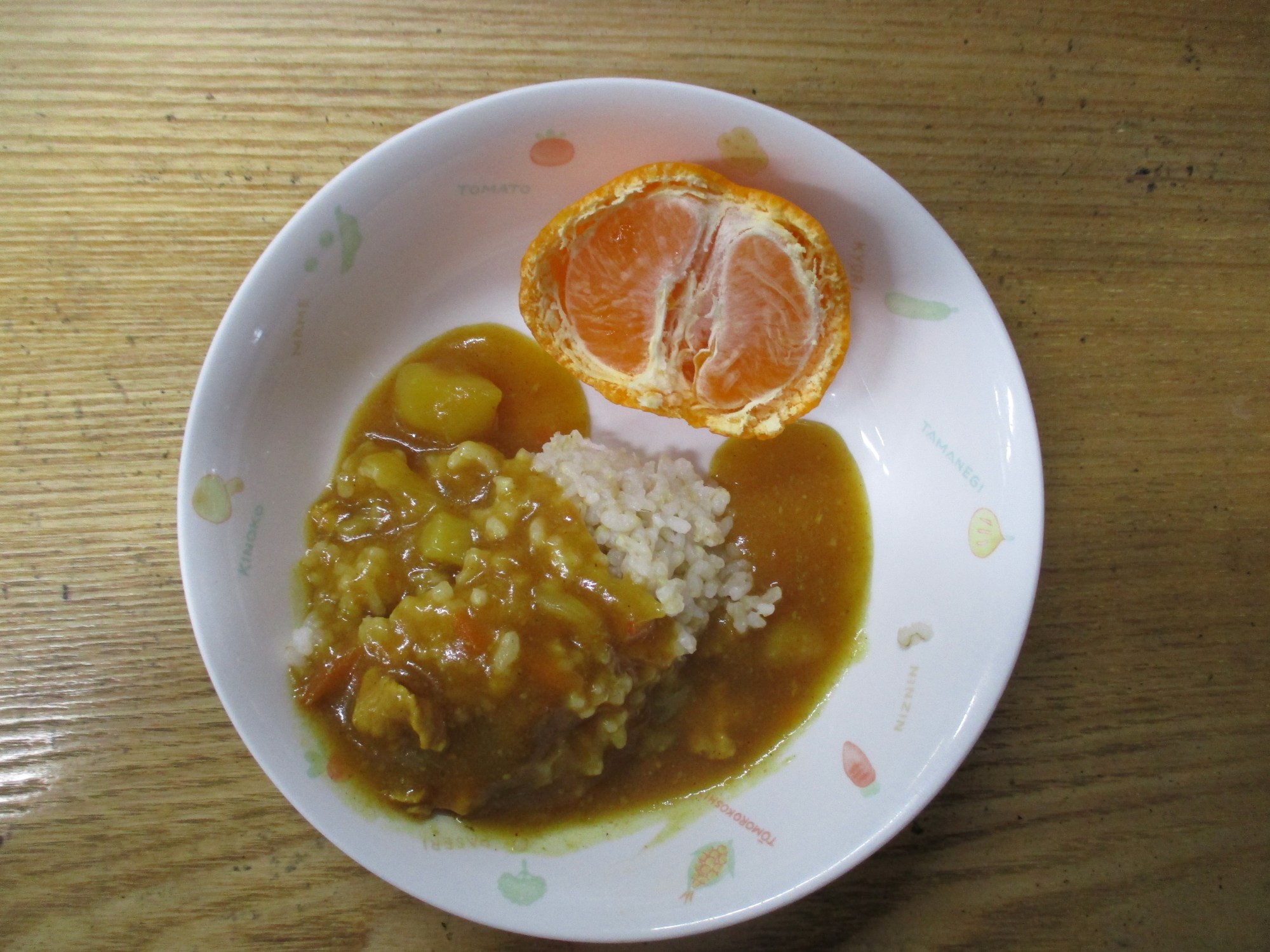 3枚目:【普通食:未満児】カレーライス・みかん