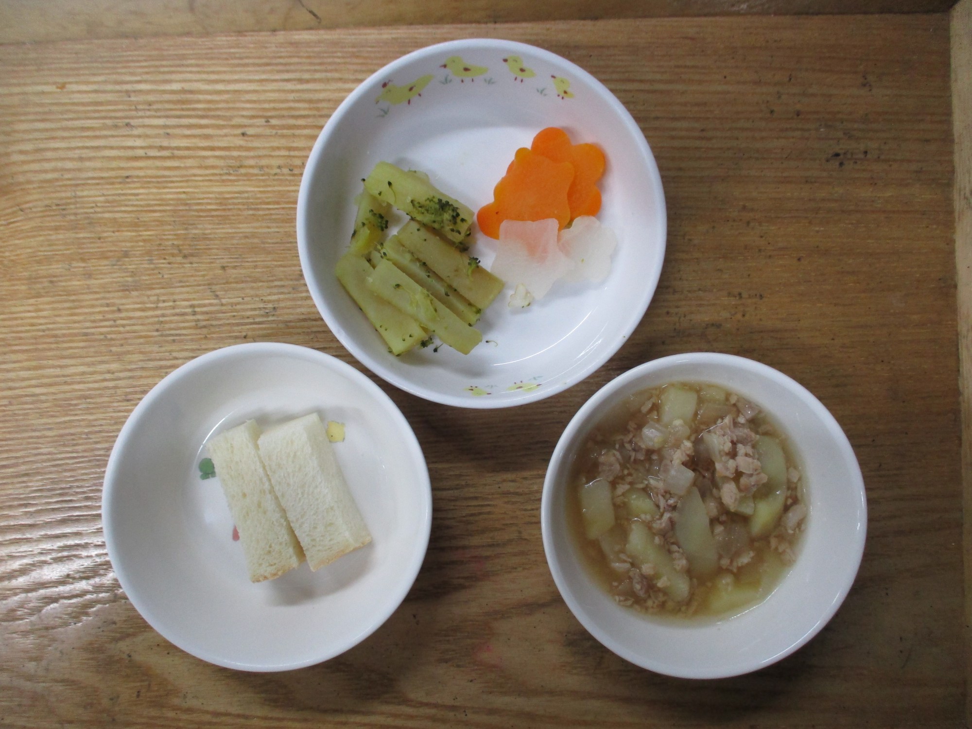 4枚目:【離乳食】食パン・鶏肉のポトフ・型抜き野菜・おさつサラダ
